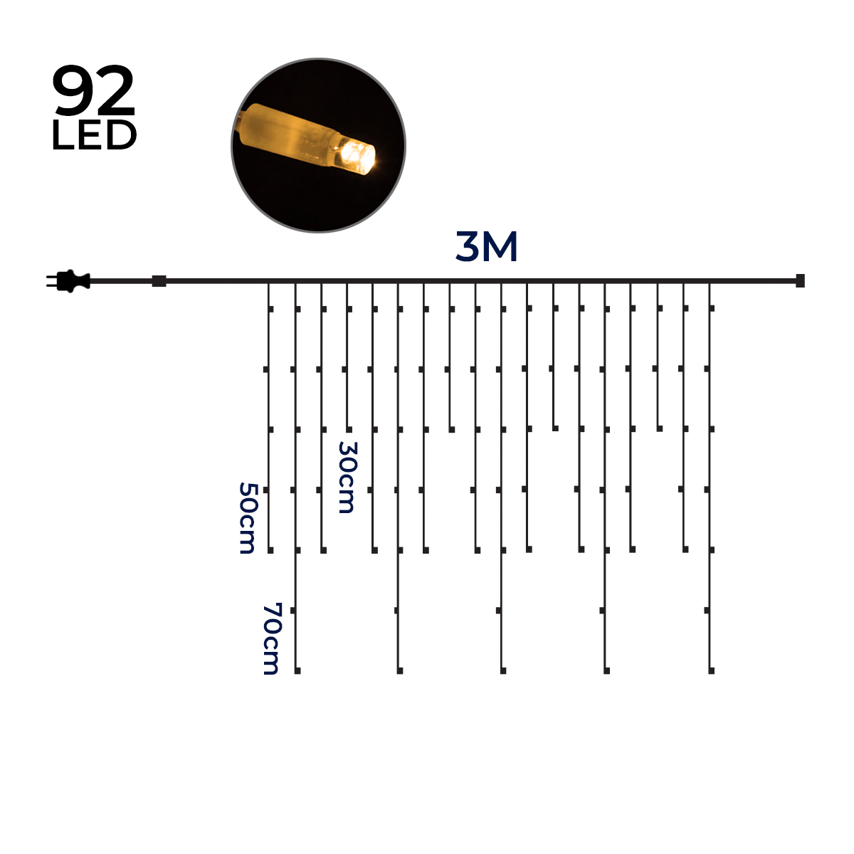 Nel mondo dell'illuminazione esterna, la tenda luminosa LED emerge come un elemento distintivo, capace di trasformare qualsiasi spazio aperto in un angolo di magia e suggestione. Questa specifica tenda, dotata di 92 luci LED di colore giallo, offre non solo una soluzione illuminotecnica di alto profilo ma si pone anche come un vero e proprio complemento d'arredo per esterni, dal giardino al terrazzo, passando per balconi e spazi dedicati a eventi e celebrazioni all'aperto. Realizzata con materiali selezionati per la loro qualità e durabilità, la tenda si compone di un filo di rame placcato in argento, accuratamente rivestito in PVC bianco. Questa scelta non è casuale ma è il risultato di una ricerca attenta volta a garantire la massima resistenza alle intemperie, conformemente allo standard IP44. Tale grado di protezione assicura che la tenda luminosa sia non solo esteticamente piacevole ma anche funzionale e resistente, in grado di affrontare umidità e spruzzi d'acqua senza subire danni. Con una lunghezza totale di 3 metri e cavi pendenti di varie lunghezze (30, 50, 70 cm), la tenda crea un affascinante effetto visivo, capace di catturare lo sguardo e di donare all'ambiente un'atmosfera calda e accogliente. La disposizione dei LED, collocati a una distanza di 10 cm l'uno dall'altro, è studiata per ottenere una distribuzione uniforme della luce, evitando zone d'ombra e garantendo una luminosità diffusa e piacevole. L'alimentazione a 220-240V AC e la frequenza di 50/60 Hz rendono questa tenda luminosa adatta all'uso in diversi contesti geografici, mentre l'attacco Spina Schuko facilita ulteriormente l'installazione, eliminando la necessità di adattatori aggiuntivi. La funzionalità dual-mode, che permette di alternare tra luce fissa e intermittente, offre la flessibilità necessaria per adattarsi a diverse atmosfere e occasioni, dalla serata tranquilla in giardino alla festa elegante, passando per le decorazioni natalizie. Uno degli aspetti più apprezzati è senza dubbio la possibilità di collegare fino a 10 unità insieme. Questa caratteristica consente di estendere la decorazione luminosa a piacimento, coprendo aree ampie senza rinunciare alla coerenza estetica e alla continuità visiva. Che si tratti di avvolgere un pergolato, di delineare il contorno di un terrazzo o di creare un cielo stellato sopra un giardino, la modularità della tenda luminosa LED offre soluzioni creative e versatili per ogni esigenza decorativa. La scelta dei LED di tipo Reflex F8 si rivela fondamentale per garantire una luce brillante ma mai abbagliante, contribuendo a creare un'atmosfera intima e rilassante, perfetta per godersi le serate all'aperto in completa serenità. La cura dei dettagli, dall'alta qualità dei materiali alla flessibilità d'uso, dalla resistenza alle intemperie alla facilità di installazione, fa di questa tenda luminosa LED un'opzione di primo piano per chi desidera abbinare funzionalità e stile nell'illuminazione dei propri spazi esterni. In conclusione, la tenda luminosa LED con 92 luci gialle fisse e intermitenti rappresenta una scelta eccellente per chi cerca un prodotto capace di coniugare bellezza, praticità e durabilità. Che si tratti di arricchire l'ambiente esterno di casa o di creare la cornice luminosa per un evento speciale, questa tenda offre soluzioni illuminotecniche di alto livello, facili da installare e da personalizzare, per trasformare ogni spazio in un luogo incantato dove luce e colore giocano un ruolo primario nel definire l'atmosfera