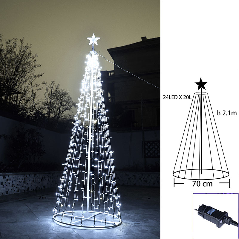 Celebra la magia del Natale con un tocco di eleganza e innovazione. Il nostro Albero di Natale da 210 cm con 480 LED F5 luce fredda è la scelta perfetta per coloro che cercano un decoro natalizio unico e di alta qualità. Questo splendido albero è progettato per aggiungere un'atmosfera festosa sia agli spazi interni che esterni, grazie al suo grado di protezione IP44 che lo rende resistente agli agenti atmosferici. L'albero di Natale presenta una serie di luci LED reflex da 5mm, con 480 LED individuali (420 a luce fissa e 60 a luce intermittente), che creano un effetto scintillante e accattivante. L'illuminazione a LED è nota per la sua efficienza energetica e lunga durata, rendendo questo albero un investimento sostenibile e a basso consumo energetico. Alimentato a 31V AC e con una frequenza di 50/60 Hz, questo albero è sicuro e facile da installare in qualsiasi ambiente. Il colore della luce bianca fredda si adatta perfettamente a qualsiasi schema di decorazione, aggiungendo un tocco di eleganza e luminosità. L'angolo di illuminazione a 360° garantisce che ogni parte dell'albero sia splendidamente illuminata, creando un punto focale affascinante nella tua casa o nel tuo giardino. Le luci LED hanno una funzionalità del 90% a luce fissa e 10% a luce intermittente, permettendo di variare l'atmosfera e creare diversi effetti luminosi. Questo albero è realizzato in metallo di alta qualità, assicurando robustezza e durabilità. Il colore del cavo trasparente si integra armoniosamente con l'albero, mantenendo un aspetto pulito e ordinato. Le dimensioni dell'albero, 210 x 70 cm, lo rendono ideale per qualsiasi spazio, offrendo un equilibrio perfetto tra presenza scenica e versatilità. Che sia posizionato in un angolo accogliente del soggiorno, all'ingresso di un ufficio o come parte centrale di un giardino invernale, questo albero di Natale con LED è progettato per stupire e creare un'atmosfera natalizia indimenticabile. Inoltre, l'installazione e la manutenzione sono semplici e intuitive. L'albero è facilmente assemblabile e smontabile, rendendolo comodo da riporre una volta terminata la stagione festiva. La sua struttura in metallo è sia leggera che resistente, garantendo che l'albero possa essere facilmente spostato e ricollocato secondo le esigenze decorative