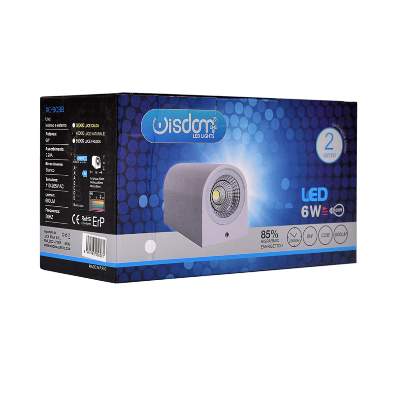 L'illuminazione gioca un ruolo cruciale nell'arredamento di ogni spazio interno, influenzando non solo l'aspetto visivo ma anche l'atmosfera e il benessere di chi lo vive. L'Applique LED Cilindrica 6W 6500K rappresenta una soluzione avanzata per chi cerca una sorgente luminosa che unisca efficienza energetica, design moderno e un'illuminazione di qualità. Questo modello di applique, con un design cilindrico elegante e minimalista, si adatta perfettamente a vari stili d'arredo, da quelli più classici a quelli contemporanei. La sua forma compatta e discreta la rende ideale per l'installazione a parete, contribuendo a creare un ambiente luminoso e accogliente in qualsiasi stanza della casa, dall'ingresso al soggiorno, dalla camera da letto all'ufficio. Con una temperatura di colore di 6500K, l'applique emette una luce fredda, chiara e vivace. Questa caratteristica la rende particolarmente adatta per ambienti di lavoro o studi, dove è importante mantenere alta la concentrazione e la produttività. La luce emessa è infatti stimolante e aiuta a creare un'atmosfera energica e attiva. Dal punto di vista tecnico, l'Applique LED Cilindrica 6500K si distingue per le sue prestazioni elevate. Con una potenza di 6W, garantisce un'illuminazione efficace e diffusa, con un flusso luminoso di 600 lumen. La tecnologia LED utilizzata è all'avanguardia, assicurando un consumo energetico ridotto e una durata notevole, con circa 25.000 ore di funzionamento. Inoltre, la classe energetica A+ ne testimonia l'alta efficienza e sostenibilità. Il corpo della lampada è realizzato in alluminio di alta qualità, un materiale resistente e durevole, capace di conferire all'applique un aspetto raffinato e moderno. La finitura in colore bianco si integra facilmente con diversi schemi di colore e arredamento, contribuendo a valorizzare gli spazi senza sovrastarli. La lampada è dotata di un angolo di illuminazione di 120°, garantendo una distribuzione della luce ampia e uniforme. La doppia emissione luminosa è un'altra caratteristica distintiva, che permette di creare effetti luminosi interessanti e funzionali per vari usi. La facilità di installazione e la versatilità d'uso rendono quetsa applique un'opzione eccellente sia per il settore residenziale che commerciale. Sia che si desideri creare un ambiente accogliente in casa o migliorare l'illuminazione in un ufficio, negozio o qualsiasi altro ambiente interno, questa lampada è la scelta giusta