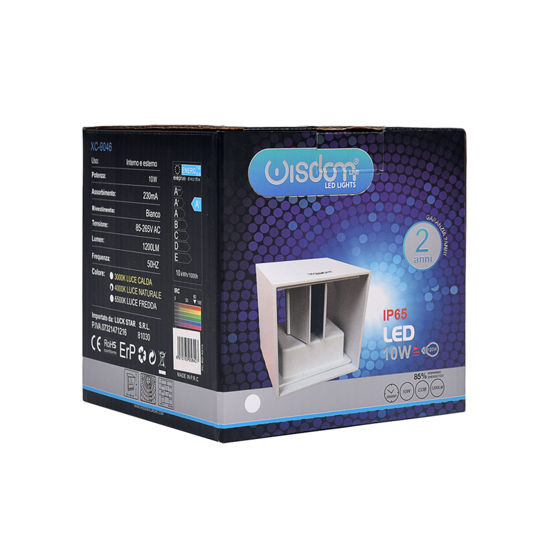 Scoprite l'APPLIQUE LED CUBO BIANCO 10W, una vera e propria rivoluzione nell'illuminazione di interni ed esterni. Questo prodotto unisce un design elegante e contemporaneo a un'efficienza energetica eccezionale, rendendolo una scelta ideale per chi desidera combinare stile e sostenibilità. Con la sua potenza di 10W e una temperatura di colore di 4000K, l'applique LED offre una luce naturale e confortevole, perfetta per creare un'atmosfera accogliente e rilassante in qualsiasi spazio. Il design minimalista e moderno dell'applique si adatta con facilità a vari stili di arredamento, da quello classico a quello più contemporaneo, rendendola una soluzione versatile per ogni tipo di ambiente. La finitura in bianco opaco e la forma cubica aggiungono un tocco di raffinatezza e di modernità, valorizzando gli spazi interni ed esterni della vostra casa. Realizzata in alluminio di alta qualità, l'applique LED Cubo garantisce non solo un aspetto estetico di primo livello, ma anche una durabilità e una resistenza alle intemperie eccezionali, con un grado di protezione IP65. Questo la rende adatta sia per ambienti interni, come corridoi, camere da letto e soggiorni, sia per spazi esterni, come terrazze, giardini e vialetti. Il chip LED COB ad alta efficienza assicura un flusso luminoso di 1000 lumen, offrendo un'illuminazione brillante e omogenea, ideale per evidenziare dettagli architettonici o per creare un ambiente invitante. Con un angolo di emissione regolabile da 5° a 120°, è possibile personalizzare la distribuzione della luce secondo le vostre esigenze specifiche. Grazie al suo basso consumo energetico, questa applique LED è una scelta ecologica, contribuendo a ridurre il vostro impatto ambientale e a risparmiare sui costi energetici. Inoltre, la sua lunga durata, fino a 50.000 ore di vita utile, la rende un investimento a lungo termine, riducendo la necessità di sostituzioni frequenti. L'installazione è semplice e intuitiva, con viti e tasselli inclusi per un montaggio a parete facile e sicuro. Inoltre, il funzionamento silenzioso e senza sfarfallio assicura un confort visivo ottimale, senza disturbi o fastidi. In conclusione, l'Applique LED Cubo Bianco 10W Luce Naturale 4000K è una soluzione di illuminazione ideale per chi cerca una combinazione di estetica, funzionalità e sostenibilità. Con la sua luce naturale, il design elegante e la durabilità superiore, questa applique LED rappresenta una scelta eccellente per illuminare e valorizzare i vostri spazi, sia interni che esterni