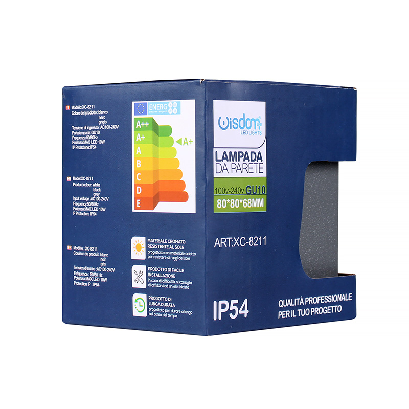 L'applique LED cubo GU10 grigio emerge come una scelta prediletta per chi aspira a infondere eleganza e funzionalità nell'illuminazione esterna della propria abitazione o dello spazio commerciale. Questo prodotto, che eccelle per il suo design minimalista e contemporaneo, si integra armoniosamente con varie ambientazioni esterne quali giardini, ingressi, terrazze e sentieri, elevandone l'estetica e l'atmosfera. Realizzato con alluminio di eccellente qualità, il corpo cubico di questa applique si distingue per un aspetto sofisticato e pulito, in perfetta sintonia con le tendenze attuali del design per esterni. Il colore grigio, simbolo di versatilità e raffinatezza, si adatta con facilità a diversi stili architettonici, contribuendo a creare contrasti visivi intriganti e a valorizzare l'architettura circostante con una luce accogliente e direzionale. La tecnologia LED GU10 incorporata rappresenta una caratteristica di spicco, offrendo efficienza energetica, durata e sostenibilità. Questa scelta ecologica non solo riduce i costi energetici ma anche l'impatto ambientale, garantendo un'illuminazione esterna di lunga durata con minimo spreco. La capacità di generare un flusso luminoso ben definito rende quest'applique ideale per scenari accoglienti o per mettere in risalto dettagli architettonici e elementi del paesaggio. Grazie all'attacco GU10, gli utenti hanno la libertà di selezionare lampadine secondo l'intensità luminosa e la tonalità desiderate, una flessibilità che si rivela cruciale nell'illuminazione esterna per creare l'atmosfera giusta e soddisfare specifiche esigenze visive. Questa versatilità, unita a una tensione di alimentazione variabile (110-265V AC) e una frequenza di 50/60 Hz, assicura la compatibilità universale dell'applique in vari contesti geografici e con differenti sistemi elettrici. L'angolo di illuminazione di 120° promette una distribuzione ampia e uniforme della luce, ottimale per illuminare vasti spazi esterni in modo efficace. La qualità dei materiali, in particolare l'uso dell'alluminio, non solo conferisce un'estetica di classe ma garantisce anche resistenza e durabilità contro gli agenti atmosferici, grazie al grado di protezione IP 44. Questo assicura una lunga durata del prodotto con necessità di manutenzione ridotta al minimo. Le dimensioni compatte (80 x 80 x 68 mm) dell'applique offrono un equilibrio ideale tra discrezione e funzionalità, permettendo un'integrazione armoniosa in qualsiasi contesto esterno senza appesantire visivamente lo spazio, ma anzi arricchendolo di un'illuminazione equilibrata e piacevole. In conclusione, l'applique LED cubo GU10 grigio si propone come soluzione ideale per chi desidera abbellire gli spazi esterni con un tocco di eleganza e alta efficienza. Il suo design moderno, insieme a prestazioni tecniche avanzate e facilità di installazione, la rendono una scelta eccellente per valorizzare esteticamente e funzionalmente qualsiasi ambiente esterno
