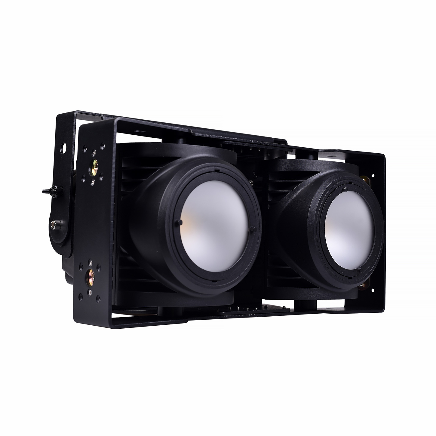 La coppia di accecatori stroboscopici LED da 400W IP65 a luce calda rappresenta una soluzione altamente professionale per eventi live, concerti, teatri e produzioni outdoor e indoor. Questo dispositivo Blinder è dotato di 2 potenti chip LED COB che offrono una resa luminosa intensa e omogenea, con tonalità di luce calda (Warm White) perfetta per creare atmosfere coinvolgenti. Il corpo dell’accecatore è costruito con materiali robusti e resistenti alle intemperie, ed è progettato per garantire un’elevata durabilità grazie alla certificazione IP65, che lo rende completamente protetto da polvere e getti d’acqua. Le dimensioni compatte e la struttura solida ma leggera (solo 8 kg), unite al pratico Flight Case, facilitano il trasporto e l’installazione rapida in qualsiasi contesto. Ogni faro è dotato di lenti Fresnel estraibili, per una gestione flessibile del fascio luminoso. Il supporto orientabile permette la regolazione manuale della direzione della luce, così da indirizzare perfettamente l’illuminazione dove necessario. Questo rende la coppia di accecatori a LED da 400W ideale anche per eventi dinamici dove il controllo visivo dell’ambiente è fondamentale. Tra le caratteristiche tecniche avanzate troviamo il controllo DMX a 6 o 2 canali, il funzionamento in modalità Master/Slave, automatica o sincronizzata al ritmo musicale, per effetti di luce stroboscopici perfettamente sincronizzati con la musica. L’effetto Strobo è potente e regolabile, mentre il dimmer lineare da 0 a 100% consente un controllo preciso dell’intensità luminosa. L’accecatore è alimentato tramite sistema Trucon IN/OUT, che assicura un collegamento elettrico professionale e sicuro, ideale per installazioni fisse o temporanee. Funziona con tensione universale 90-240V AC, a 50/60 Hz. Il dispositivo si distingue anche per il suo design professionale nero opaco, compatibile con contesti tecnici e scenografici. È la scelta perfetta per chi cerca un Blinder LED potente, affidabile e impermeabile, capace di garantire prestazioni elevate anche all’esterno
