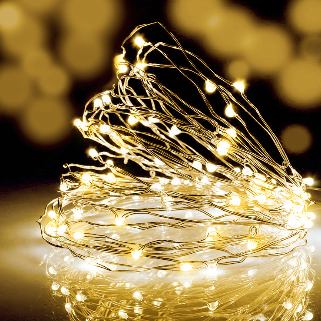 Filo di luci microled con cavo silver metal flessibile e modellabile.. Questa catena va alimentata con pile stilo AA ed è munita di vano portabatterie bianco munito di timer , utilizzabile in esterno e con grado di protezione IP44. Risultan pertanto ideale per decorazioni luminose in ambienti esterni quali giardini, gazebi, patii, alberi