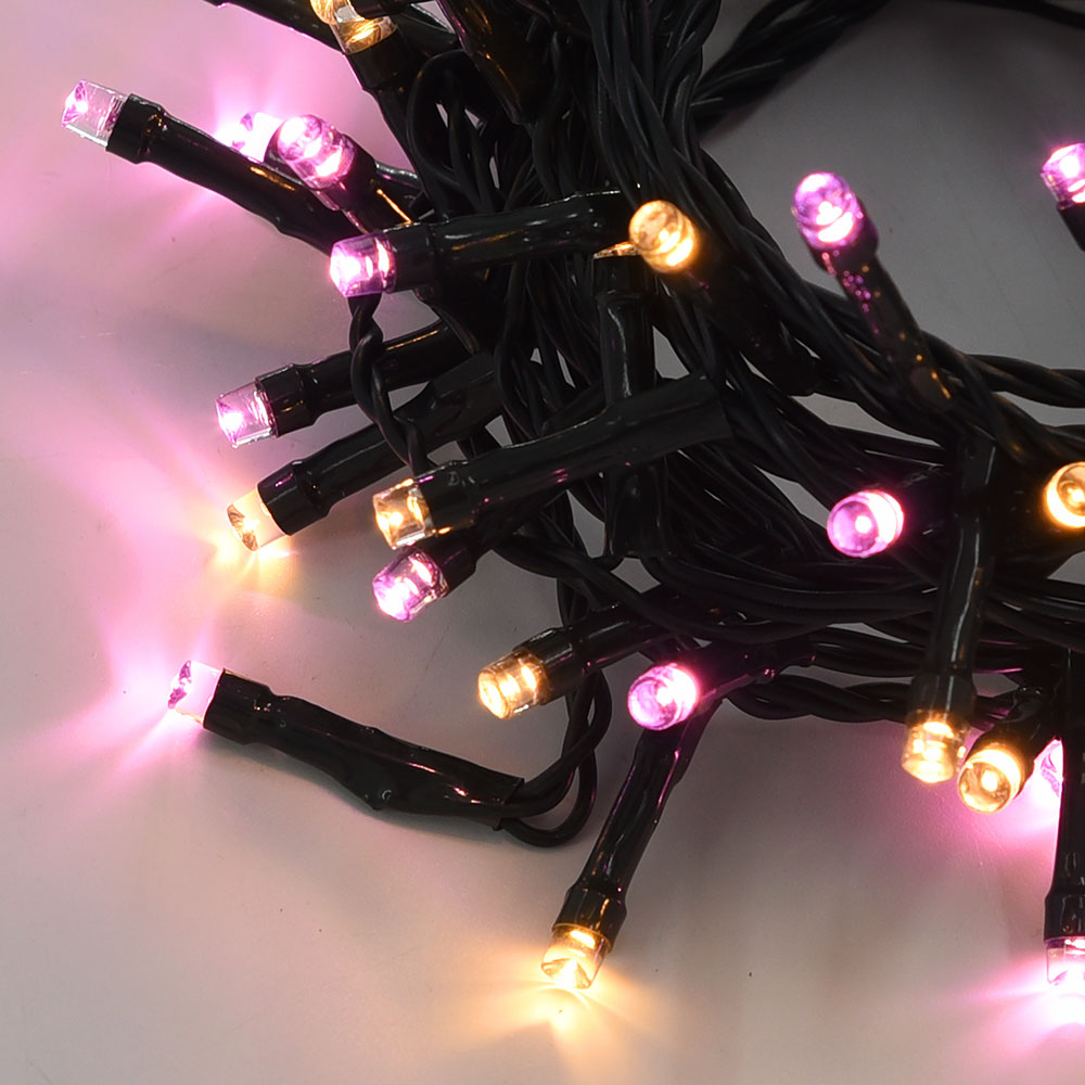 ILLUMINAZIONE DECORATIVA CATENA LED 100 LUCI ROSA E GIALLE DA 5M EFFICIENZA ENERGETICA E ALTA QUALITA' PER INTERNI ED ESTERNI