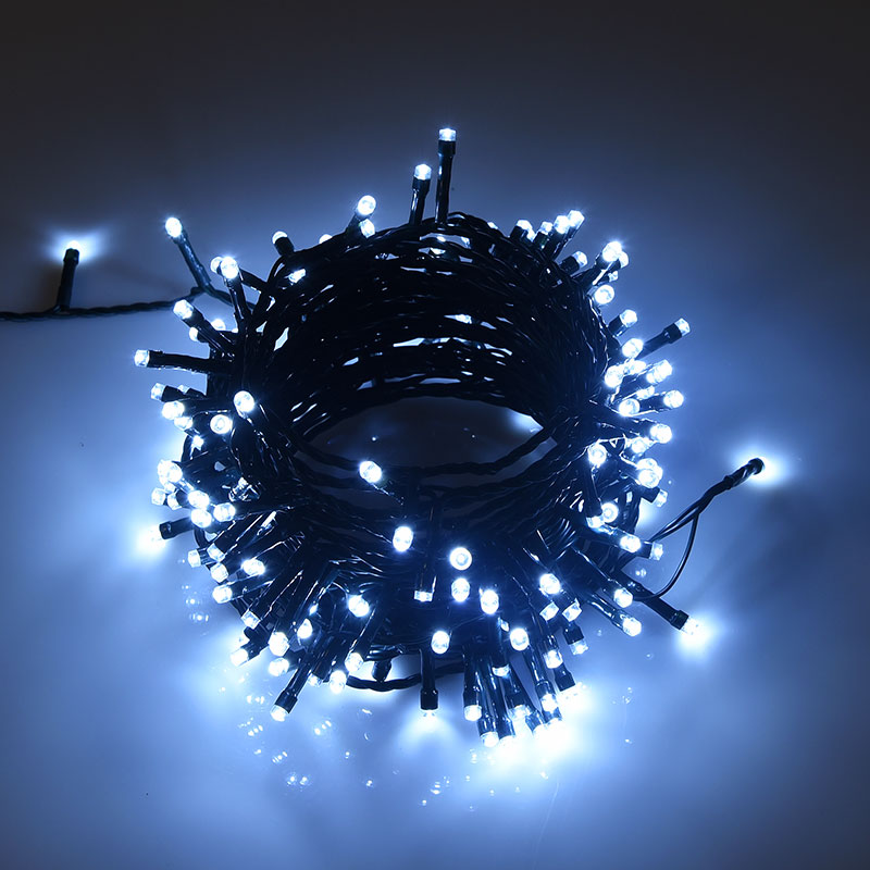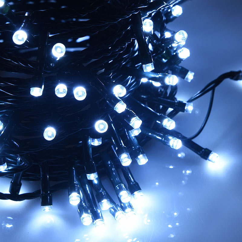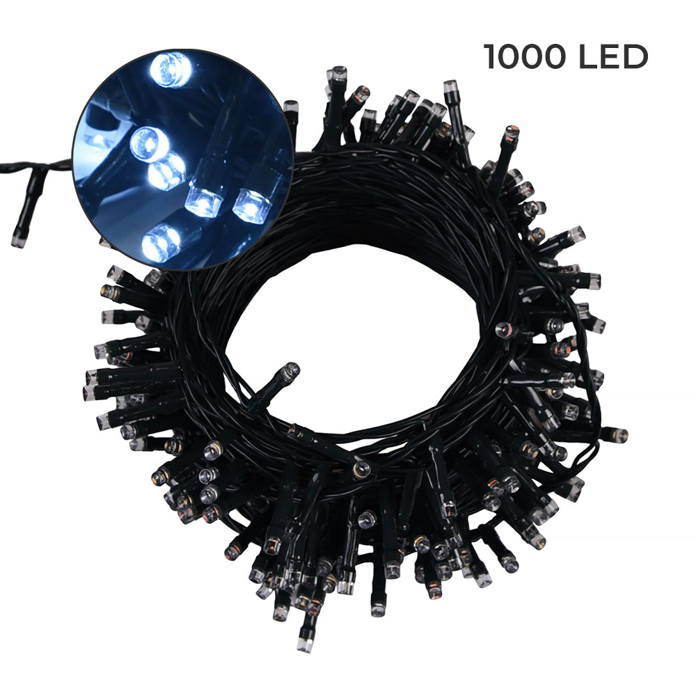 Scoprite la magia delle nostre catene luminose LED, progettate per trasformare i vostri spazi esterni in veri e propri angoli di paradiso. Con 1000 LED Reflex F5 che emettono una luce bianca pura e brillante, questa catena luminosa di 50 metri è l'ideale per decorare giardini, terrazzi, balconi e alberi di Natale, aggiungendo un tocco di eleganza e calore. Il nostro prodotto si distingue per la sua flessibilità e versatilità, consentendo una facile installazione in vari ambienti. La lunghezza di 50 metri, combinata con la distanza di 5 cm tra ogni LED, offre un'illuminazione uniforme e intensa. Il cavo di alimentazione di 3 metri e il trasformatore 31V con presa Schuko rendono il collegamento alla rete elettrica semplice e sicuro. La catena è realizzata con materiali durevoli e resistenti alle intemperie, come gomma e rame, garantendo longevità e affidabilità. Il grado di protezione IP44 assicura resistenza agli agenti atmosferici, rendendo queste luci ideali per l'uso esterno. Scegliete tra 8 diversi giochi di luce preimpostati per creare l'atmosfera perfetta per ogni occasione. Dalle sequenze dinamiche a quelle più sobrie e rilassanti, queste impostazioni vi permetteranno di personalizzare l'ambiente in base al vostro umore o all'evento. Dotata di un sistema di alimentazione a bassa tensione (31V) e compatibile con una tensione di rete 220-240V AC a 50 Hz, la catena LED garantisce sicurezza e un basso consumo energetico. L'uso di LED Reflex F5 assicura una luminosità ottimale con un minore impatto ambientale. Grazie alla sua flessibilità, la catena luminosa può essere facilmente avvolta attorno a strutture o alberi, o stesa lungo i bordi di balconi e terrazzi. L'installazione non richiede attrezzi speciali, rendendola accessibile a tutti. Queste luci sono perfette per creare un'atmosfera festosa durante il periodo natalizio, ma anche per illuminare serate estive o eventi speciali. Sono ideali per abbellire alberi, pergolati, gazebo e qualsiasi spazio esterno che desideriate valorizzare. Le nostre catene luminose rappresentano un'idea regalo originale e apprezzata, ideale per chi ama decorare e creare atmosfere uniche nel proprio spazio abitativo o nel giardino. Nonostante l'alta qualità e la resistenza, la manutenzione richiesta è minima. Basta una pulizia periodica per assicurare che la luminosità dei LED rimanga inalterata nel tempo. Le nostre catene luminose LED sono una scelta eccellente per chi cerca una soluzione di illuminazione esterna elegante, funzionale e sicura. Con 1000 luci LED, 8 giochi di luce e un design flessibile e resistente, queste luci aggiungeranno un tocco di magia a qualsiasi ambiente esterno
