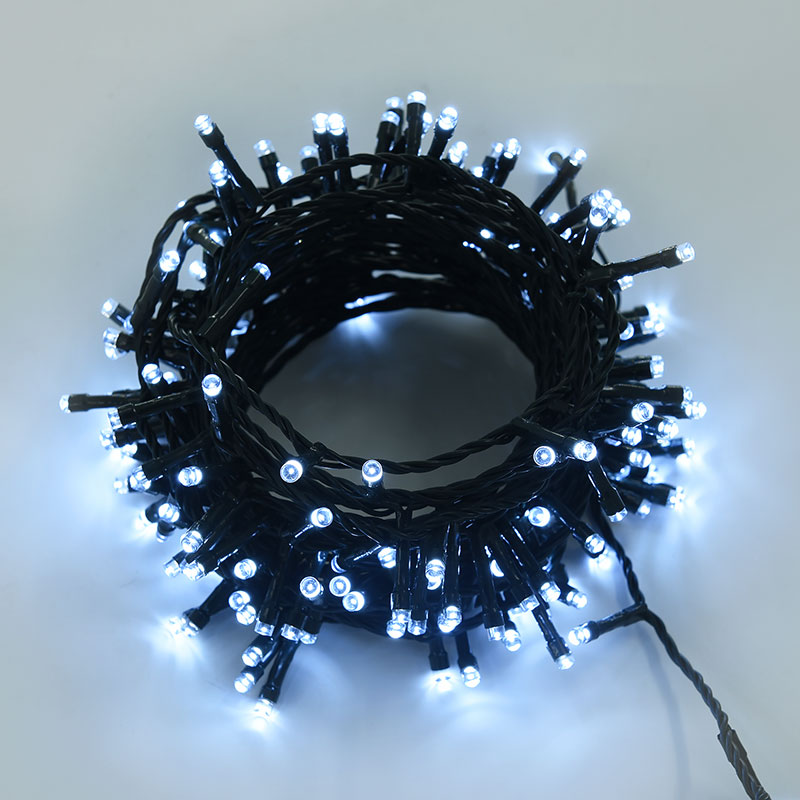 Scoprite la magia delle nostre catene luminose LED, progettate per trasformare i vostri spazi esterni in veri e propri angoli di paradiso. Con 1000 LED Reflex F5 che emettono una luce bianca pura e brillante, questa catena luminosa di 50 metri è l'ideale per decorare giardini, terrazzi, balconi e alberi di Natale, aggiungendo un tocco di eleganza e calore. Il nostro prodotto si distingue per la sua flessibilità e versatilità, consentendo una facile installazione in vari ambienti. La lunghezza di 50 metri, combinata con la distanza di 5 cm tra ogni LED, offre un'illuminazione uniforme e intensa. Il cavo di alimentazione di 3 metri e il trasformatore 31V con presa Schuko rendono il collegamento alla rete elettrica semplice e sicuro. La catena è realizzata con materiali durevoli e resistenti alle intemperie, come gomma e rame, garantendo longevità e affidabilità. Il grado di protezione IP44 assicura resistenza agli agenti atmosferici, rendendo queste luci ideali per l'uso esterno. Scegliete tra 8 diversi giochi di luce preimpostati per creare l'atmosfera perfetta per ogni occasione. Dalle sequenze dinamiche a quelle più sobrie e rilassanti, queste impostazioni vi permetteranno di personalizzare l'ambiente in base al vostro umore o all'evento. Dotata di un sistema di alimentazione a bassa tensione (31V) e compatibile con una tensione di rete 220-240V AC a 50 Hz, la catena LED garantisce sicurezza e un basso consumo energetico. L'uso di LED Reflex F5 assicura una luminosità ottimale con un minore impatto ambientale. Grazie alla sua flessibilità, la catena luminosa può essere facilmente avvolta attorno a strutture o alberi, o stesa lungo i bordi di balconi e terrazzi. L'installazione non richiede attrezzi speciali, rendendola accessibile a tutti. Queste luci sono perfette per creare un'atmosfera festosa durante il periodo natalizio, ma anche per illuminare serate estive o eventi speciali. Sono ideali per abbellire alberi, pergolati, gazebo e qualsiasi spazio esterno che desideriate valorizzare. Le nostre catene luminose rappresentano un'idea regalo originale e apprezzata, ideale per chi ama decorare e creare atmosfere uniche nel proprio spazio abitativo o nel giardino. Nonostante l'alta qualità e la resistenza, la manutenzione richiesta è minima. Basta una pulizia periodica per assicurare che la luminosità dei LED rimanga inalterata nel tempo. Le nostre catene luminose LED sono una scelta eccellente per chi cerca una soluzione di illuminazione esterna elegante, funzionale e sicura. Con 1000 luci LED, 8 giochi di luce e un design flessibile e resistente, queste luci aggiungeranno un tocco di magia a qualsiasi ambiente esterno