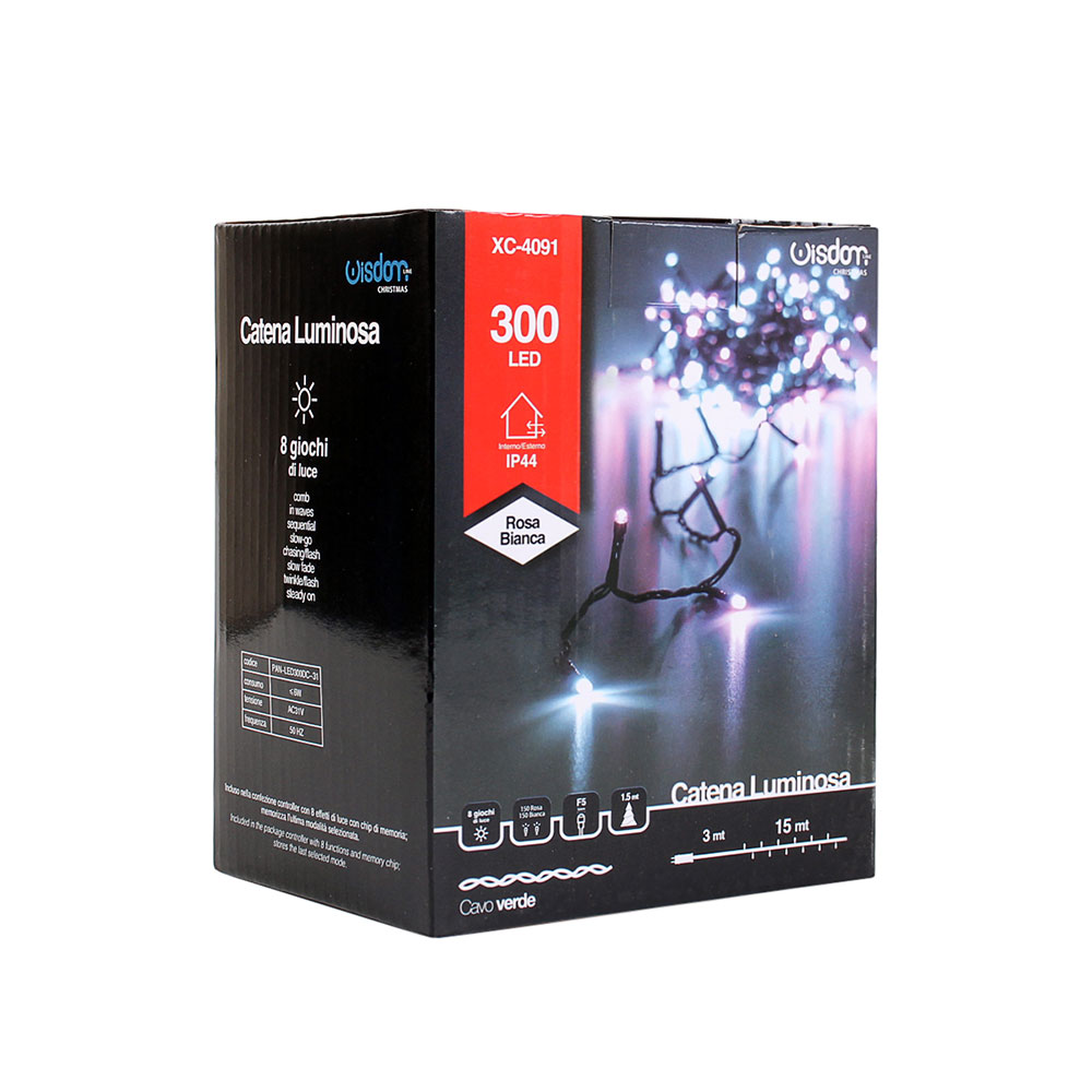 ILLUMINA LA TUA CASA CON LO STILE DELLA CATENA LUMINOSA LED 300 LUCI ROSA E BIANCHE 15M 8 EFFETTI LUMINOSI BASSO CONSUMO E SICUREZZA IP44