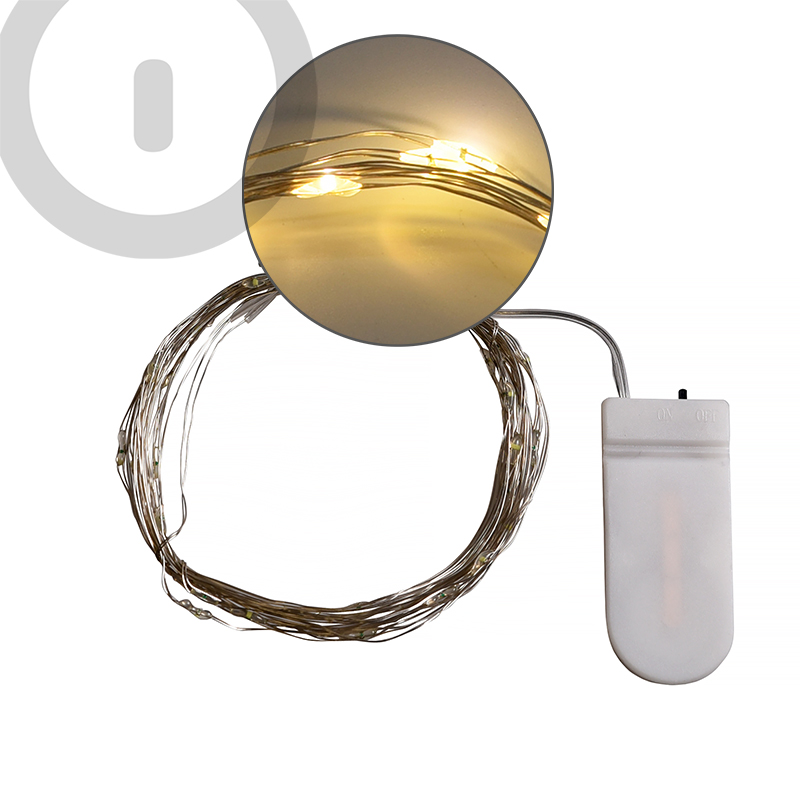 CATENA LUMINOSA 20 MICROLED CAVO METALLICO FLESSIBILE COLORE ARGENTO DA 2 METRI CON LUCE CALDA ALIMENTATTA A BATTERIA IDEALE PER NATALE MATRIMONI E FESTE