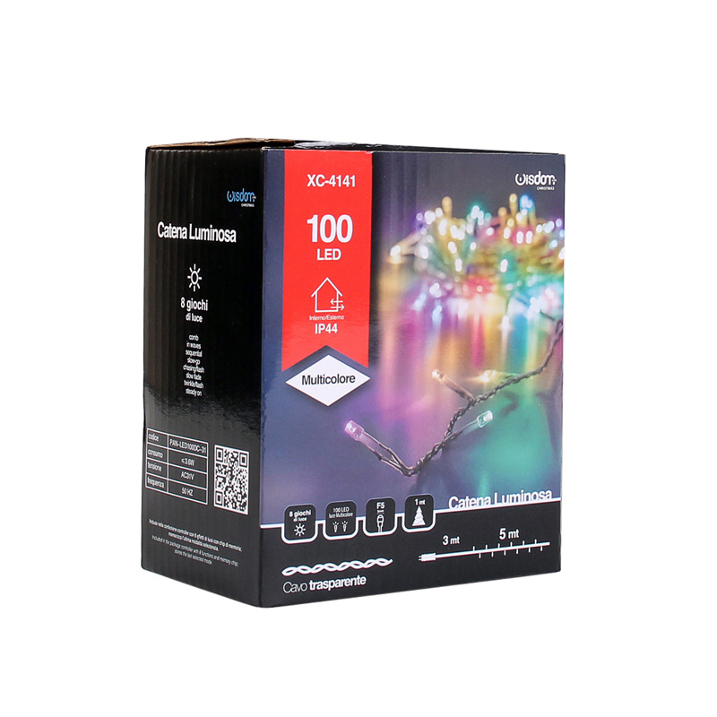 Scopri il fascino e l'eleganza della nostra Catena 100 LED da 5 metri, una soluzione di illuminazione versatile e incantevole perfetta per ogni occasione. Questa catena luminosa, con il suo design flessibile e la vivace miscela di luci multicolore, trasformerà qualsiasi ambiente in uno spazio festoso e accogliente. Ideale per decorazioni natalizie, feste, eventi all'aperto e per aggiungere un tocco magico agli interni, questa catena è un accessorio indispensabile per chi ama creare atmosfere uniche e memorabili. La nostra catena luminosa è caratterizzata da 100 LED Reflex F5 di alta qualità che emettono una luce brillante e colorata, creando un'atmosfera vivace e festiva. La lunghezza di 5 metri la rende perfetta per avvolgere alberi di Natale, contornare porte e finestre, decorare caminetti o addirittura illuminare giardini e balconi. Il cavo trasparente si fonde armoniosamente con l'ambiente circostante, rendendo le luci i veri protagonisti del tuo spazio decorativo. Innovativa e sicura, la catena luminosa è dotata di un trasformatore di corrente a 31 volt che assicura un uso sicuro e a basso consumo energetico. La frequenza di 50/60 Hz garantisce una luminosità costante e vivace, ideale per lunghe serate festose. La catena è anche dotata di 8 giochi di luce preimpostati, permettendoti di scegliere tra diverse modalità di illuminazione per adattarsi a ogni mood e occasione. Progettata per durare, la nostra catena luminosa è realizzata con materiali di alta qualità come gomma e rame, garantendo resistenza e flessibilità. Il grado di protezione IP44 assicura una buona resistenza agli agenti atmosferici, rendendola adatta sia per interni che per esterni. L'attacco Spina Schuko offre una connessione affidabile e sicura, rendendo l'installazione semplice e pratica. Che tu stia cercando di aggiungere un tocco di magia al tuo albero di Natale, creare un'atmosfera accogliente in casa o illuminare una festa all'aperto, la nostra Catena 100 LED da 5 metri è la scelta perfetta. Con il suo splendore multicolore, flessibilità e facilità d'uso, questa catena luminosa ti aiuterà a creare ricordi indimenticabili e momenti speciali