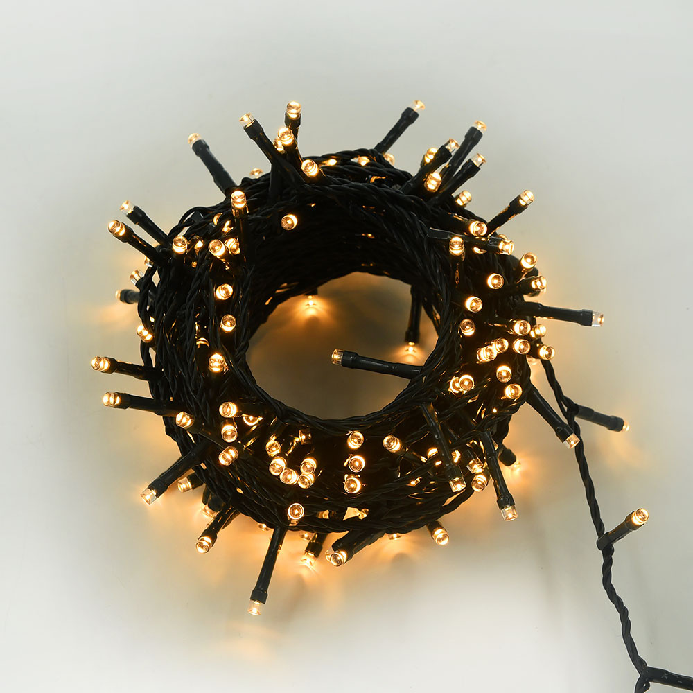 La Catena Luminosa Wisdom 300 LED, estendendo per ben 15 metri, rappresenta una soluzione ideale sia per la decorazione interna che esterna. Il suo cavo verde si fonde armoniosamente con l'ambiente, offrendo una luce calda e accogliente, perfetta per creare atmosfere magiche in ogni tipo di spazio.Grazie alla tecnologia LED avanzata, questa catena luminosa non solo assicura un'illuminazione di alta qualità ma si rivela anche particolarmente efficiente dal punto di vista energetico. A differenza delle tradizionali luci a incandescenza, i LED della Wisdom 300 consumano meno energia, riducendo significativamente i costi in bolletta e l'impatto ambientale. Uno dei punti di forza di questa catena luminosa è la sua versatilità. Con 8 diverse modalità di illuminazione, è possibile scegliere tra effetti lampeggianti, scintillanti, luce fissa, onde, dissolvenza, sfumature e altri ancora, adattandosi perfettamente ad ogni occasione e necessità. Questa varietà rende la questa catena ideale per ogni tipo di evento, dalla decorazione natalizia al giardino per una festa estiva, passando per l'allestimento di vetrine e interni commerciali. Non solo estetica, ma anche sicurezza. La catena è alimentata da un trasformatore di corrente a bassa tensione (31V), garantendo un utilizzo sicuro anche all'interno di casa. Questo aspetto è fondamentale quando si tratta di decorare ambienti frequentati da bambini o animali domestici. La lunghezza del cavo di alimentazione, che si estende per 3 metri, offre una grande flessibilità nella scelta del punto di installazione, permettendo di raggiungere facilmente anche le prese più distanti. La costruzione di alta qualità della WISDOM 300 LED assicura resistenza alle intemperie e all'umidità, grazie al suo grado di protezione IP 44. Ciò significa che la catena può essere utilizzata all'esterno senza preoccupazioni, resistendo a pioggia leggera e spruzzi d'acqua, rendendola perfetta per giardini, terrazzi e altri spazi all'aperto. In termini di installazione, questa catena luminosa è stata progettata per essere il più user-friendly possibile. Facile da montare e smontare, non richiede attrezzi speciali o competenze tecniche particolari. La sua flessibilità e leggerezza la rendono semplice da manipolare e adattare a qualsiasi ambiente, sia che si tratti di avvolgerla attorno a un albero, di drappeggiarla su una parete o di usarla per contornare il perimetro di una stanza. Inoltre, il colore del cavo, in un verde discreto, si integra perfettamente in ambienti naturali, rendendolo quasi invisibile quando utilizzato in giardini o terrazze, contribuendo a creare un'atmosfera più naturale e rilassante. L'illuminazione LED, oltre ad essere esteticamente piacevole, è anche un'opzione ecologica. Per riassumere, questa Luminaria da 300 LED è una scelta eccellente per chi cerca una soluzione di illuminazione versatile, sicura, efficiente e di facile installazione. Che si tratti di creare un'atmosfera accogliente in casa, di dare un tocco magico al proprio giardino o di allestire una vetrina accattivante, questa catena luminosa risponde a tutte le esigenze con stile e funzionalità
