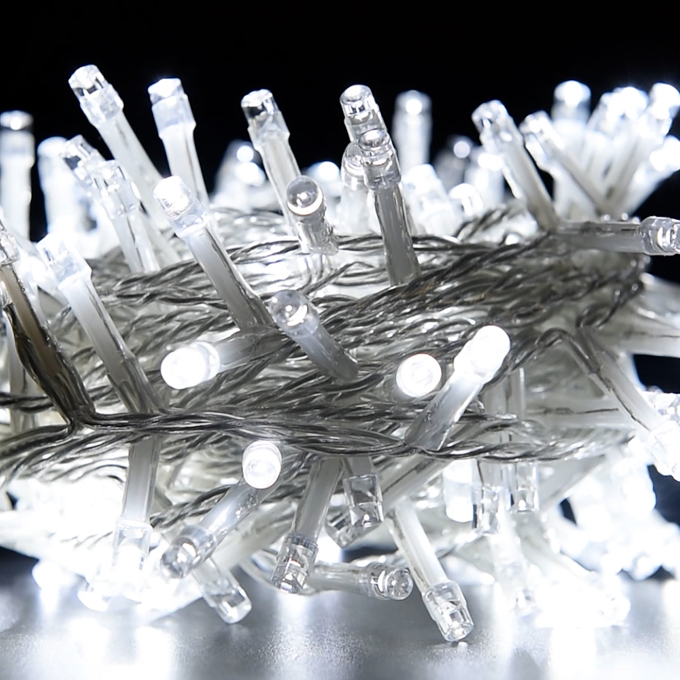 CATENA LUMINOSA 100 LED 9M LUCE BIANCA CAVO TRASPARENTE 220V