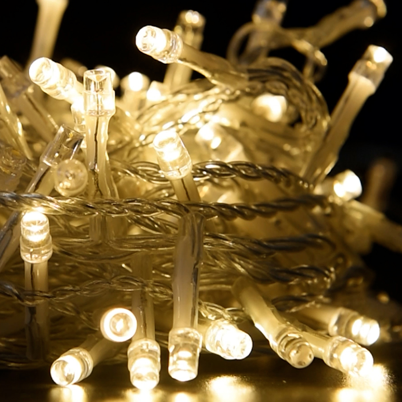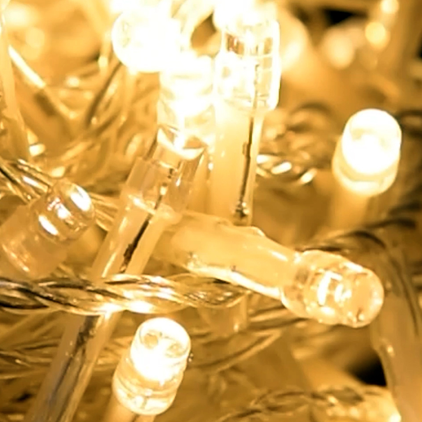 CATENA LUMINOSA 100 LED 9M LUCE CALDA CAVO TRASPARENTE 220V