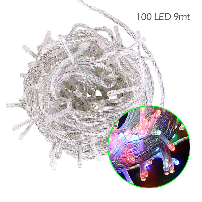 La magia del Natale si accende in ogni angolo della casa con la nostra Catena Luminosa LED Multicolore da 100 luci, un accessorio imprescindibile per creare un'atmosfera festiva e calorosa. Progettata per la decorazione interna, questa catena luminosa è un esempio eccellente di come la tecnologia LED possa trasformare gli spazi con la sua vivace palette di colori e l'efficienza energetica. Pensata per la sicurezza e l'affidabilità, la catena è alimentata a 220V AC con un cavo di alimentazione di 1,5 metri, offrendo una soluzione pratica e sicura per l'illuminazione festiva. Il grado di protezione IP20 assicura che sia resistente alla polvere, rendendola durevole e affidabile nel tempo. Il design elegante e discreto del cavo trasparente permette di integrare la catena luminosa in qualsiasi contesto decorativo. Con una lunghezza totale di 9 metri, offre la flessibilità necessaria per adornare alberi di Natale, cornici di porte, finestre o qualsiasi altro spazio che desideri illuminare. I 100 LED multicolore di questa catena sono un vero spettacolo per gli occhi, offrendo una gamma di colori vivaci e brillanti che aggiungono un tocco di allegria alle decorazioni natalizie. La possibilità di scegliere tra 8 giochi di luce diversi, da effetti lampeggianti a transizioni morbide, rende ogni momento delle festività unico e speciale. La semplicità d'uso è una caratteristica fondamentale di questa catena luminosa. Facile da installare e da gestire, il suo design plug-and-play consente a chiunque di creare rapidamente un ambiente festivo, mentre il controller intuitivo offre la flessibilità di cambiare le modalità di illuminazione con un semplice tocco. Questa catena luminosa non è solo un elemento decorativo, ma un investimento nella qualità e nella durata. Realizzata con materiali di alta qualità, è progettata per resistere nel tempo, garantendo che la tua casa sia illuminata splendidamente per molte stagioni a venire. Il risparmio energetico dei LED multicolore non solo garantisce una luminosità superiore, ma contribuisce anche a ridurre i costi energetici. Oltre ad essere ideale per l'albero di Natale, questa catena luminosa è straordinariamente versatile. Può essere utilizzata per decorare diversi spazi della casa durante le festività, ma anche in altre occasioni come feste di compleanno o come decorazione permanente, aggiungendo un tocco di colore e di luce in qualsiasi momento dell'anno. In conclusione, la nostra Catena Luminosa LED Multicolore 100 Luci rappresenta la scelta perfetta per chi cerca una soluzione di illuminazione natalizia che coniughi sicurezza, efficienza energetica, versatilità e bellezza. Che tu stia cercando di aggiungere un tocco festivo alla tua casa o di creare un ambiente accogliente e colorato per le tue celebrazioni, questa catena luminosa è il modo ideale per farlo