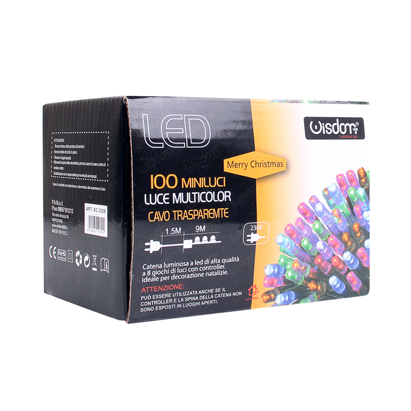 La magia del Natale si accende in ogni angolo della casa con la nostra Catena Luminosa LED Multicolore da 100 luci, un accessorio imprescindibile per creare un'atmosfera festiva e calorosa. Progettata per la decorazione interna, questa catena luminosa è un esempio eccellente di come la tecnologia LED possa trasformare gli spazi con la sua vivace palette di colori e l'efficienza energetica. Pensata per la sicurezza e l'affidabilità, la catena è alimentata a 220V AC con un cavo di alimentazione di 1,5 metri, offrendo una soluzione pratica e sicura per l'illuminazione festiva. Il grado di protezione IP20 assicura che sia resistente alla polvere, rendendola durevole e affidabile nel tempo. Il design elegante e discreto del cavo trasparente permette di integrare la catena luminosa in qualsiasi contesto decorativo. Con una lunghezza totale di 9 metri, offre la flessibilità necessaria per adornare alberi di Natale, cornici di porte, finestre o qualsiasi altro spazio che desideri illuminare. I 100 LED multicolore di questa catena sono un vero spettacolo per gli occhi, offrendo una gamma di colori vivaci e brillanti che aggiungono un tocco di allegria alle decorazioni natalizie. La possibilità di scegliere tra 8 giochi di luce diversi, da effetti lampeggianti a transizioni morbide, rende ogni momento delle festività unico e speciale. La semplicità d'uso è una caratteristica fondamentale di questa catena luminosa. Facile da installare e da gestire, il suo design plug-and-play consente a chiunque di creare rapidamente un ambiente festivo, mentre il controller intuitivo offre la flessibilità di cambiare le modalità di illuminazione con un semplice tocco. Questa catena luminosa non è solo un elemento decorativo, ma un investimento nella qualità e nella durata. Realizzata con materiali di alta qualità, è progettata per resistere nel tempo, garantendo che la tua casa sia illuminata splendidamente per molte stagioni a venire. Il risparmio energetico dei LED multicolore non solo garantisce una luminosità superiore, ma contribuisce anche a ridurre i costi energetici. Oltre ad essere ideale per l'albero di Natale, questa catena luminosa è straordinariamente versatile. Può essere utilizzata per decorare diversi spazi della casa durante le festività, ma anche in altre occasioni come feste di compleanno o come decorazione permanente, aggiungendo un tocco di colore e di luce in qualsiasi momento dell'anno. In conclusione, la nostra Catena Luminosa LED Multicolore 100 Luci rappresenta la scelta perfetta per chi cerca una soluzione di illuminazione natalizia che coniughi sicurezza, efficienza energetica, versatilità e bellezza. Che tu stia cercando di aggiungere un tocco festivo alla tua casa o di creare un ambiente accogliente e colorato per le tue celebrazioni, questa catena luminosa è il modo ideale per farlo