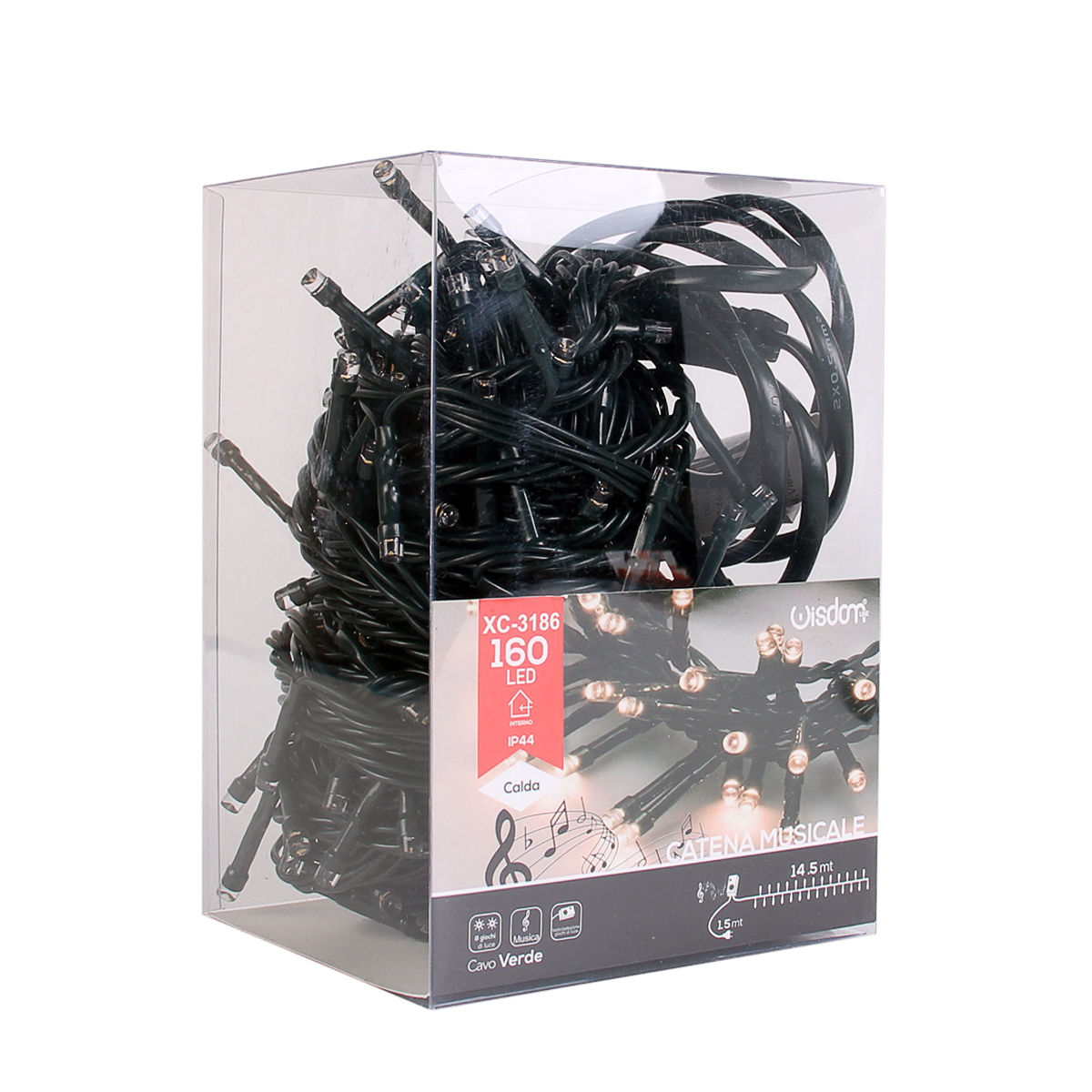 Catena luminosa led con alimentazione diretta in corrente domestica 220V e cavo di alimentazione da 1,5M. Con grado di protezione IP20, è utilizzabile esclusivamente in ambienti interni e risulta validissima nella decorazione di alberi di Natale. Munita di 8 giochi di luce calda comprensivi di luce fissa e di 7 melodie musicali con velocità regolabile