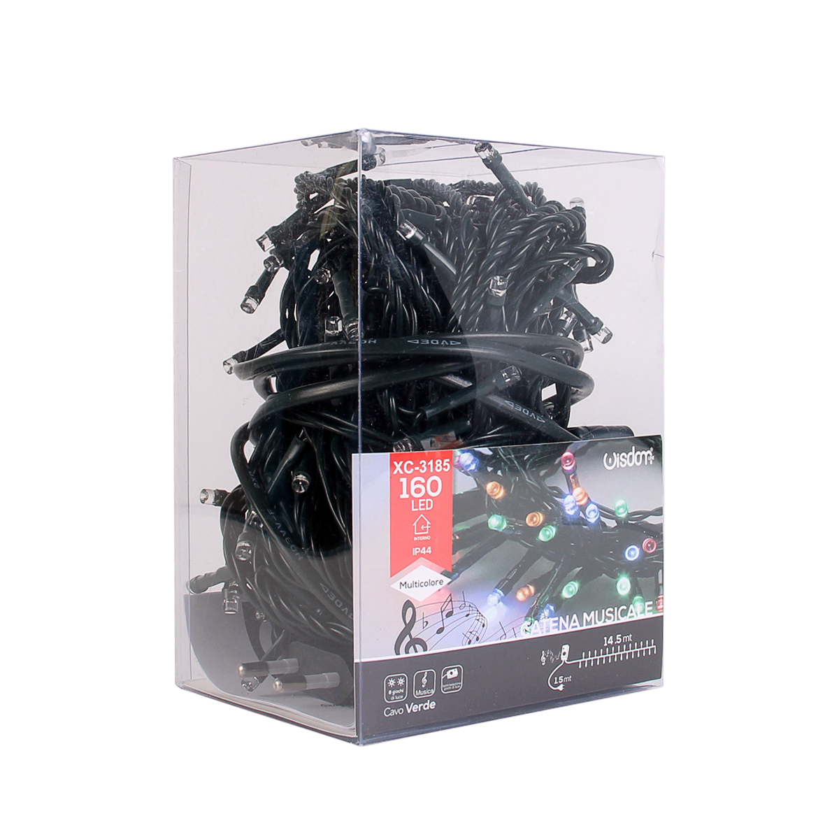 Catena luminosa led con alimentazione diretta in corrente domestica 220V e cavo di alimentazione da 1,5M. Con grado di protezione IP20, è utilizzabile esclusivamente in ambienti interni e risulta validissima nella decorazione di alberi di Natale. Munita di 8 giochi di luce calda comprensivi di luce fissa e di 7 melodie musicali con velocità regolabile