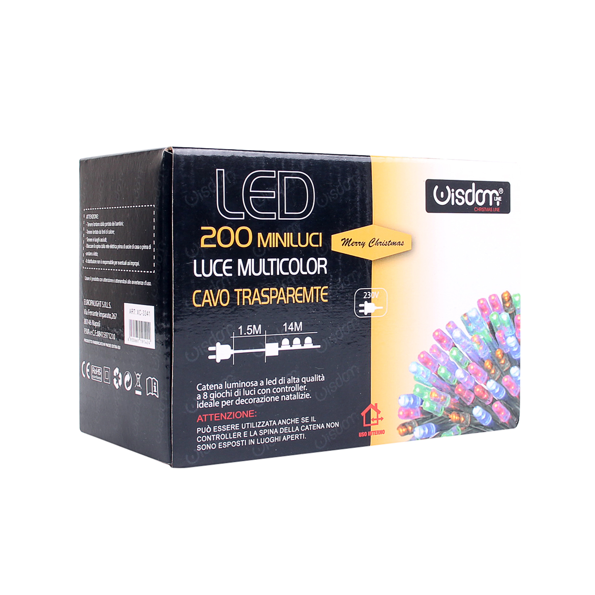 CATENA LUMINOSA 200 LED 18M LUCE MULTICOLORE CAVO TRASPARENTE