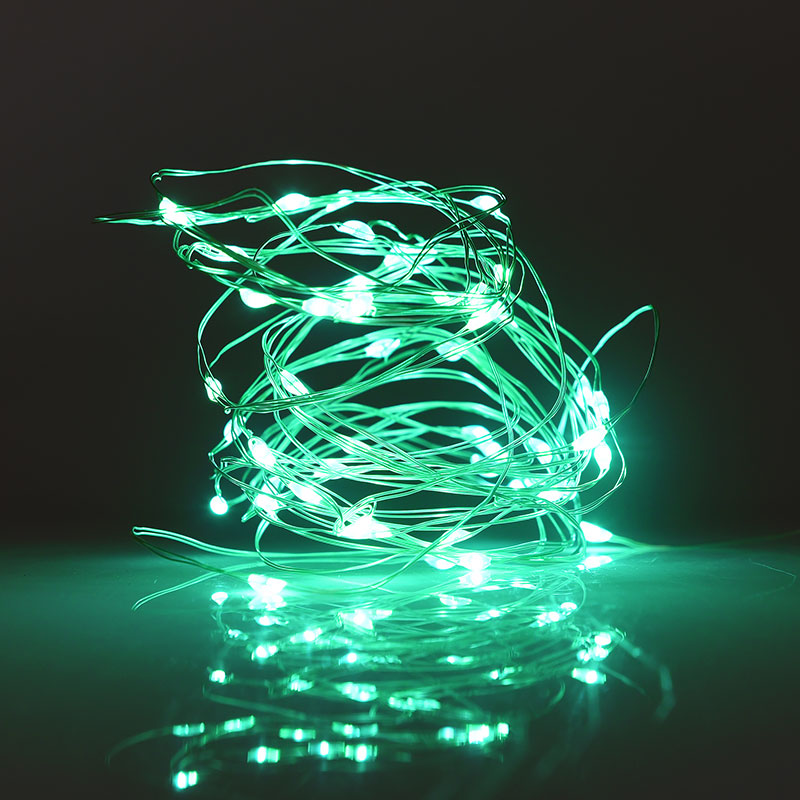 CATENA LUMINOSA A BATTERIA 3 x AA CON 50 MICROLED VERDI E CAVO FLESSIBILE COLORE ARGENTO DA 5 METRI DECORAZIONE MULTIFUNZIONALE PER INTERNI