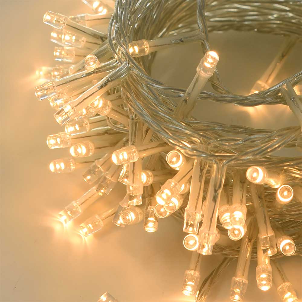La Catena Luminosa Wisdom 500 LED da 25M Luce Calda con Cavo Trasparente rappresenta una soluzione illuminativa ideale per coloro che cercano un'atmosfera accogliente e romantica in varie occasioni. Questa catena, lunga 25 metri, è dotata di 500 LED di colore caldo, offrendo un'illuminazione soffusa e avvolgente, perfetta per creare un'ambiente magico ed incantevole. Le luci LED, di tipo Reflex F5, sono disposte lungo un filo trasparente flessibile, che permette di adattarsi facilmente a qualsiasi ambiente e superficie. La distanza di 5 cm tra ogni LED assicura una distribuzione uniforme della luce, ideale per illuminare alberi di Natale, finestre, pareti, giardini, tavoli e altre aree. La sicurezza è un aspetto fondamentale di questa catena luminosa. Il trasformatore incluso, compatibile con prese Schuko, riduce la tensione di alimentazione standard (220-240V AC, 50 Hz) a 31V, garantendo un uso sicuro anche in ambienti domestici. Questo sistema a bassa tensione non solo aumenta la sicurezza, ma è anche più efficiente dal punto di vista energetico rispetto alle tradizionali catene luminose. Una caratteristica distintiva di questa catena luminosa è la varietà di modalità di illuminazione disponibili. Con 8 diversi giochi di luce preimpostati, gli utenti possono scegliere tra modalità come lampeggiante, scintillante, luce fissa, onde, dissolvenza, sfumature e altro, per adattarsi a ogni occasione o preferenza personale. Il design versatile di questa catena luminosa la rende perfetta per una varietà di occasioni. Che si tratti di un matrimonio, una festa di compleanno, un evento aziendale o semplicemente per aggiungere un tocco magico alle decorazioni natalizie, queste luci LED si adattano perfettamente a ogni esigenza. Il loro design discreto e l'eleganza della luce calda le rendono un'aggiunta meravigliosa a qualsiasi tipo di decorazione. In termini di materiali, la catena è realizzata con una combinazione di gomma e rame, assicurando durabilità e flessibilità. Il grado di protezione IP 44 indica che queste luci sono protette contro gli agenti atmosferici, rendendole adatte per l'uso sia interno che esterno. Con un cavo di alimentazione di 3 metri, la catena luminosa offre anche una grande versatilità in termini di posizionamento, permettendo di raggiungere facilmente prese elettriche e di estendersi in grandi spazi. Le luci LED sono note per la loro lunga durata e basso consumo energetico. Questa catena luminosa non fa eccezione, offrendo ore di illuminazione senza consumare eccessiva energia. Questo la rende una scelta ecologica ed economicamente vantaggiosa per l'illuminazione decorativa. Che sia per decorare un evento speciale o per aggiungere un tocco di magia alle feste natalizie, questa catena luminosa è garantita per creare l'atmosfera perfetta