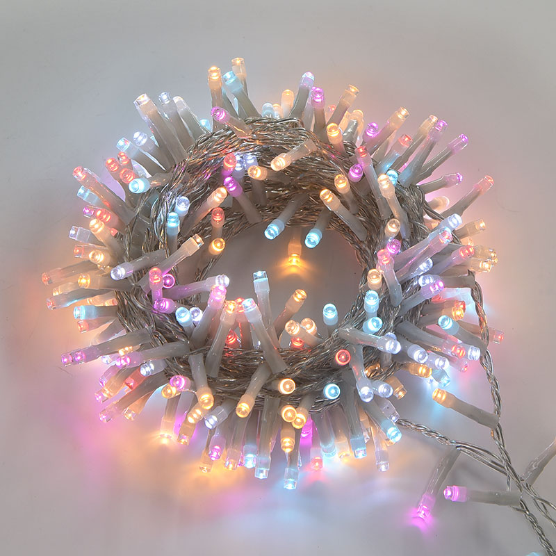 La catena luminosa multicolore composta da 864 LED del tipo Reflex F5 si estende per 21.5 metri, offrendo una soluzione di illuminazione vivace e flessibile, perfetta per decorare spazi esterni ed interni. Il suo cavo trasparente si integra armoniosamente con ogni ambiente, permettendo alle luci di brillare e catturare l'attenzione senza distrazioni visive, rendendo questa catena un elemento decorativo versatile per ogni occasione, dalla decorazione natalizia a quella per feste e eventi speciali. Con un consumo energetico di soli 7.2W, questa catena luminosa rappresenta una soluzione sostenibile per chi cerca di abbinare estetica e rispetto per l'ambiente. Il distanziamento di 2.5 cm tra i LED garantisce una diffusione luminosa uniforme, creando un'atmosfera accogliente e magica. Alimentata a 220-240V AC con una frequenza di 50 Hz, la catena è dotata di un trasformatore 31V con presa Schuko, assicurando una connessione sicura e affidabile. Una delle caratteristiche più apprezzate è la presenza di 8 giochi di luce preimpostati, che permettono di variare l'atmosfera semplicemente premendo un pulsante. Dallo scintillio delicato al lampeggio vivace, ogni modalità è studiata per adattarsi a diversi stati d'animo e occasioni, rendendo questa catena luminosa un accessorio indispensabile per chi desidera creare ambientazioni uniche e personalizzate. Il grado di protezione IP44 conferma la sua idoneità all'uso esterno, proteggendo le luci dagli spruzzi d'acqua e dalla polvere, garantendo così durata e affidabilità nel tempo. La combinazione di materiali quali gomma e rame non solo conferisce alla catena una flessibilità eccezionale, ma assicura anche una resistenza agli agenti atmosferici, rendendola una scelta ideale per giardini, terrazze, balconi, ma anche per interni, come sale per eventi, corridoi, e spazi commerciali. Il timer ON-OFF con autospegnimento è un'altra funzionalità pratica che ottimizza l'uso delle luci, permettendo di impostare cicli di illuminazione senza la necessità di intervento manuale, ideale per chi cerca soluzioni pratiche e automatizzate. Il cavo di alimentazione da 3 metri offre flessibilità nell'installazione, consentendo di posizionare la catena luminosa anche in punti lontani dalle prese elettriche. La scelta di una catena luminosa come questa non riguarda solo l'aspetto decorativo, ma anche l'impatto ambientale e il consumo energetico. La tecnologia LED è nota per la sua efficienza energetica e la lunga durata, riducendo i costi in bolletta e minimizzando la necessità di sostituzioni frequenti. Questo, combinato con l'utilizzo di materiali durevoli, fa della catena luminosa multicolore da 864 LED una scelta responsabile per chi è attento all'ambiente. Inoltre, la facilità di installazione e la versatilità d'uso rendono questa catena luminosa un'opzione attrattiva per professionisti dell'evento e del design di interni, così come per privati che desiderano aggiungere un tocco di magia ai propri spazi. Che si tratti di illuminare un giardino per una festa estiva, di creare un'atmosfera intima per una cena all'aperto o di decorare l'ambiente domestico per le festività natalizie, questa catena luminosa offre un'ampia gamma di possibilità creative