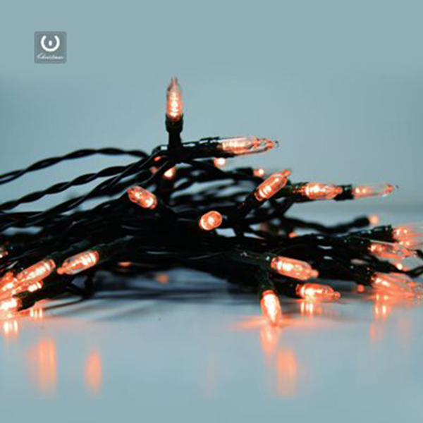 CATENA LUMINOSA A BATTERIA 100 LED LUCE ARANCIONE CAVO VERDE