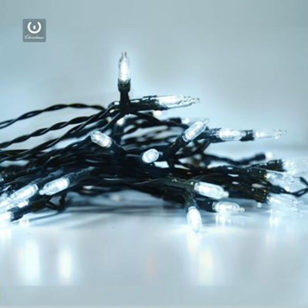 CATENA LUMINOSA A BATTERIA 100 LED LUCE BIANCA CAVO VERDE