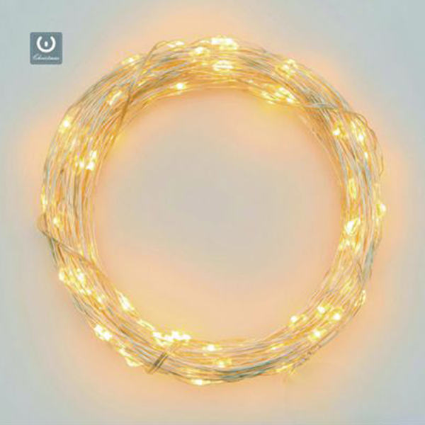 CATENA LUMINOSA A BATTERIA 150 MICRO LED SU 15 METRI DI FILO DI RAME LUCE CALDA