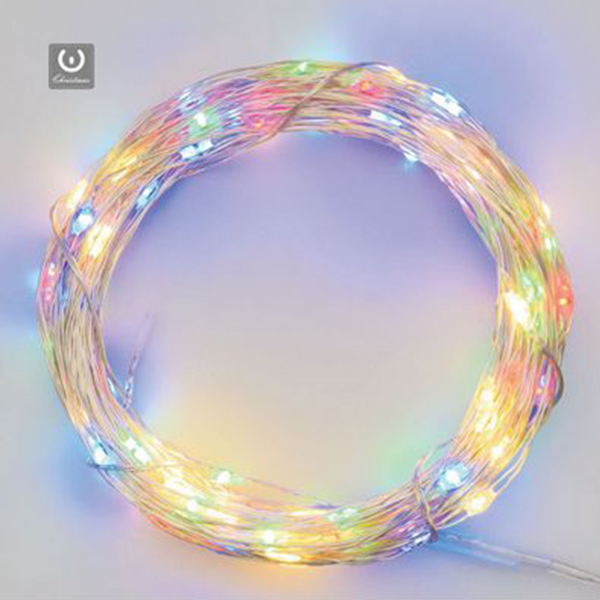 CATENA LUMINOSA A BATTERIA 150 MICRO LED SU 15 METRI DI FILO DI RAME LUCE MULTIC