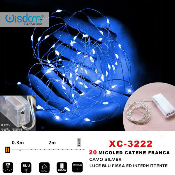 CATENA LUMINOSA A BATTERIA 20 LED LUCE BLU