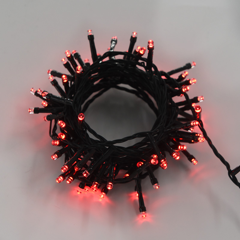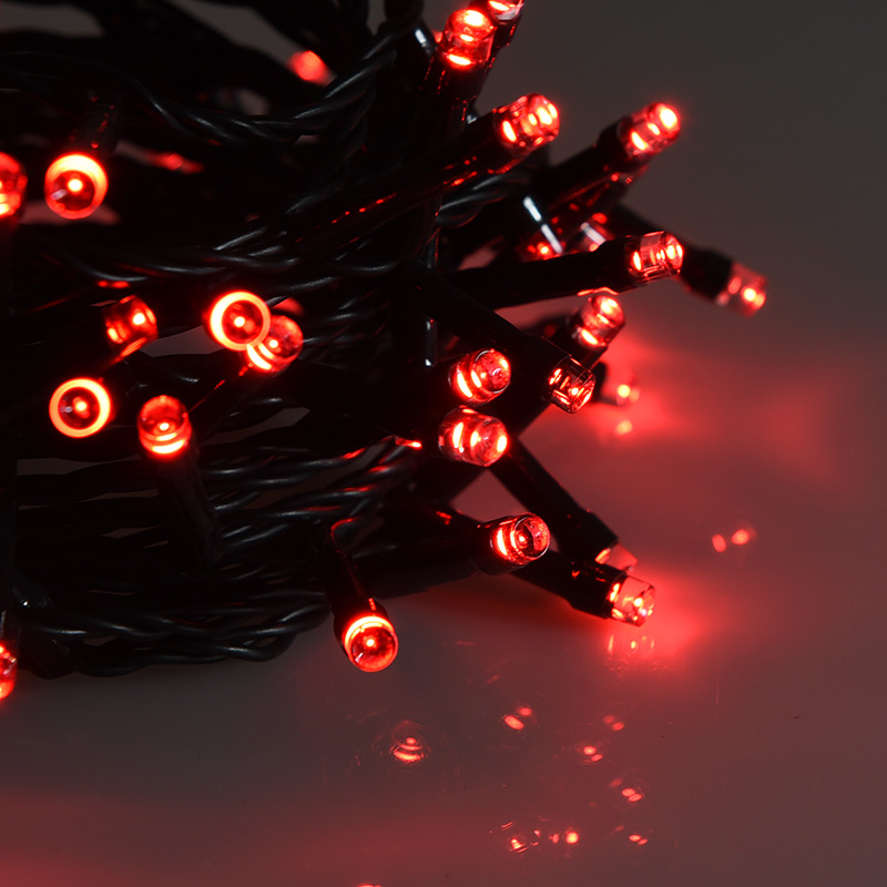 Infografica Catena 180 LED Luce Rossa su Cavo Verde di 9M IP44 per Interni ed Esterni