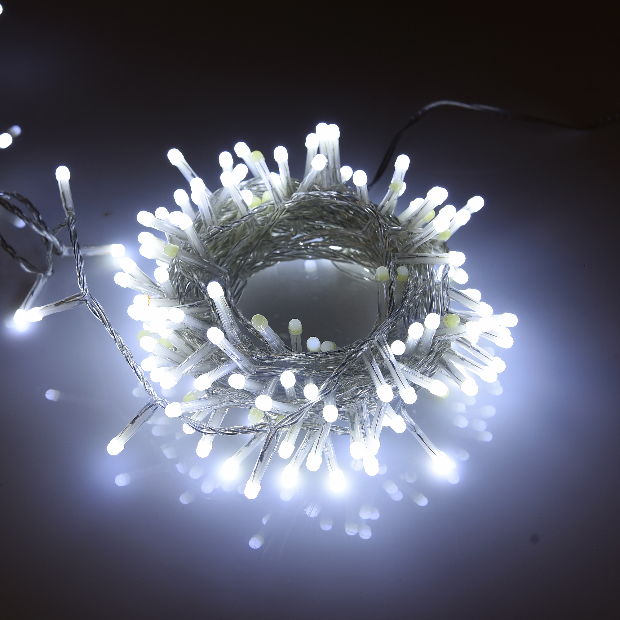 Scopri la magia e l'eleganza della nostra Catena Luminosa LED, un accessorio di design che combina funzionalità e stile per trasformare qualsiasi ambiente. Questa catena luminosa, lunga 15 metri, è dotata di 300 mini LED bianchi che emettono una luce brillante e avvolgente a 360°, creando un'atmosfera accogliente e suggestiva. Il cavo, flessibile e trasparente, si integra armoniosamente con qualsiasi decoro, rendendolo ideale per allestire spazi interni come salotti, camere da letto, vetrine di negozi, o per eventi speciali come matrimoni e feste. La sua versatilità la rende perfetta anche per l'uso esterno: giardini, terrazze, balconi, e gazebi diventeranno scenari incantati grazie a questa illuminazione raffinata. La catena luminosa è progettata per garantire la massima sicurezza e durata. Il cavo è realizzato in filo di rame placcato in argento con un rivestimento in PVC, che assicura resistenza e flessibilità. Il trasformatore 31V a bassa tensione, con presa Schuko, garantisce un utilizzo sicuro e conforme agli standard europei. La frequenza di 50/60 Hz e la tensione di alimentazione di 31V AC rendono questa catena luminosa un'opzione efficiente e a basso consumo energetico. Uno degli aspetti più affascinanti di questa catena luminosa è la sua funzionalità: dotata di un controller, offre 8 diversi giochi di luce preimpostati, inclusa l'opzione di luce fissa. Questa caratteristica permette di cambiare l'atmosfera dell'ambiente in base alle occasioni o alle preferenze personali, rendendo ogni momento unico. In termini di sicurezza, la catena luminosa supera le aspettative con il suo grado di protezione IP44, che la rende resistente agli agenti atmosferici e adatta all'uso esterno. Il design elegante e minimalista del cavo trasparente si fonde perfettamente con l'ambiente circostante, garantendo un effetto visivo di grande impatto senza essere invadente. Con una lunghezza di 15 metri e un cavo di alimentazione aggiuntivo di 3 metri, questa catena luminosa è sufficientemente lunga per coprire ampie aree, sia in ambienti interni che esterni. La sua installazione è semplice e intuitiva, permettendoti di creare facilmente l'atmosfera desiderata. Le luci bianche della catena, con un angolo di illuminazione a 360°, assicurano una distribuzione uniforme della luce, creando un effetto scenografico di grande impatto. Che tu stia cercando di aggiungere un tocco di eleganza alla tua casa, decorare un evento speciale o semplicemente creare un'atmosfera accogliente e rilassante, questa catena luminosa LED è la scelta ideale. In conclusione, la nostra Catena Luminosa LED non è solo un semplice accessorio di illuminazione, ma un vero e proprio elemento di design capace di trasformare qualsiasi spazio. La combinazione di stile, versatilità e funzionalità la rende un prodotto indispensabile per chiunque desideri creare un ambiente unico e suggestivo. Non perdere l'occasione di rendere i tuoi spazi speciali con questa elegante soluzione di illuminazione. Acquista ora la tua Catena Luminosa LED e inizia a sperimentare con la luce l'arte di creare atmosfere uniche e memorabili