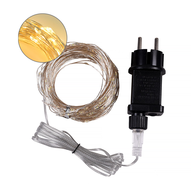 CATENA LUMINOSA LED 300 LUCI GIALLE 30 METRI DI FILO DI RAME DECORAZIONE PER ESTERNO IP44