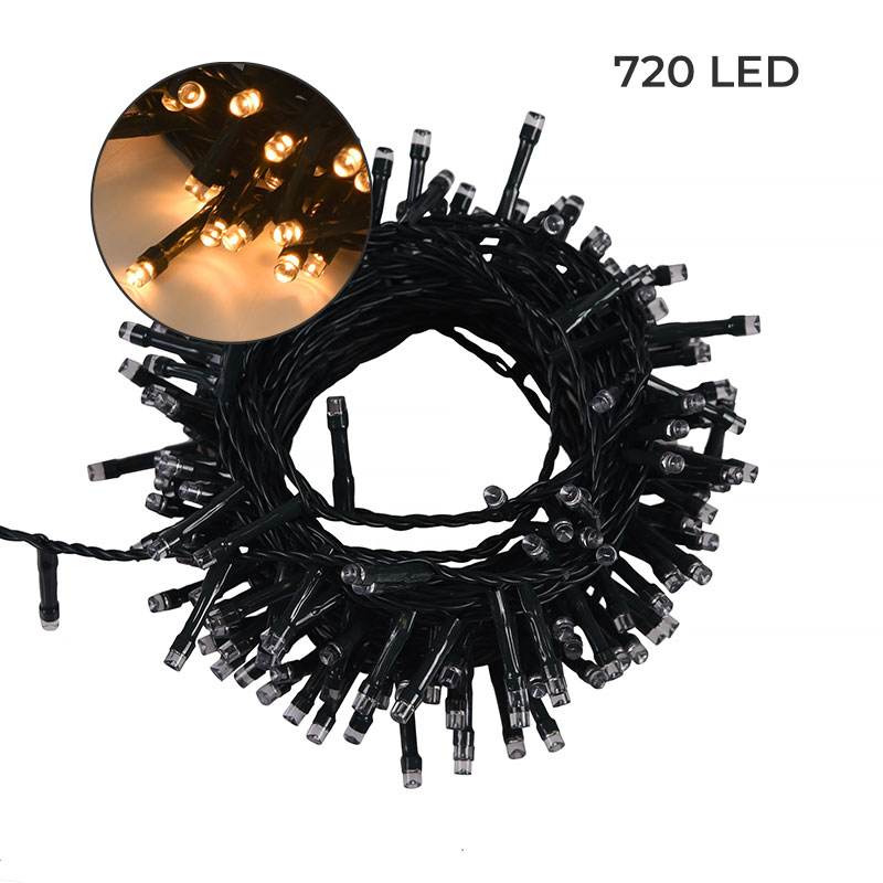 Scoprite la magia delle feste con la nostra catena di 720 luci LED, un accessorio indispensabile per chi cerca un'illuminazione di qualità superiore. Con un cavo verde discreto e una luce calda accogliente, questa catena luminosa è progettata per aggiungere un tocco di calore e fascino a qualsiasi ambiente, sia interno che esterno. La catena è dotata di 720 LED ad alta efficienza, alimentati a 31V per garantire sicurezza e durata. La varietà di 8 giochi di luce offre infinite possibilità per personalizzare il vostro spazio, rendendolo perfetto per ogni occasione. Che si tratti di un Natale tradizionale, di una festa in giardino o di un evento speciale, queste luci sono progettate per creare l'atmosfera giusta. Questo prodotto è altamente versatile, adattandosi a qualsiasi ambiente grazie al suo cavo verde che si mimetizza facilmente con la vegetazione. Inoltre, la sicurezza è una nostra priorità: il basso voltaggio di 31V assicura un utilizzo sicuro anche per periodi prolungati, riducendo il rischio di surriscaldamento. L'installazione è semplice e intuitiva, permettendo a tutti di decorare facilmente il proprio spazio. La manutenzione è minima, grazie alla qualità costruttiva delle luci LED che assicura una lunga durata nel tempo. Siamo impegnati nella sostenibilità: le luci LED sono un'opzione ecologica che riduce significativamente il consumo energetico rispetto alle tradizionali luci a incandescenza. Questo non solo aiuta l'ambiente, ma anche il vostro portafoglio, grazie a una riduzione dei costi energetici. La nostra catena di 720 LED è la scelta perfetta per chi cerca un'illuminazione di qualità, versatile e sicura. Con la sua luce calda e i vari giochi di luce, potete trasformare qualsiasi spazio in un luogo magico e accogliente. Perfetta per le festività natalizie, ma adatta anche per eventi tutto l'anno, questa catena luminosa è un investimento che vi garantirà soddisfazione e meraviglia per molti anni a venire