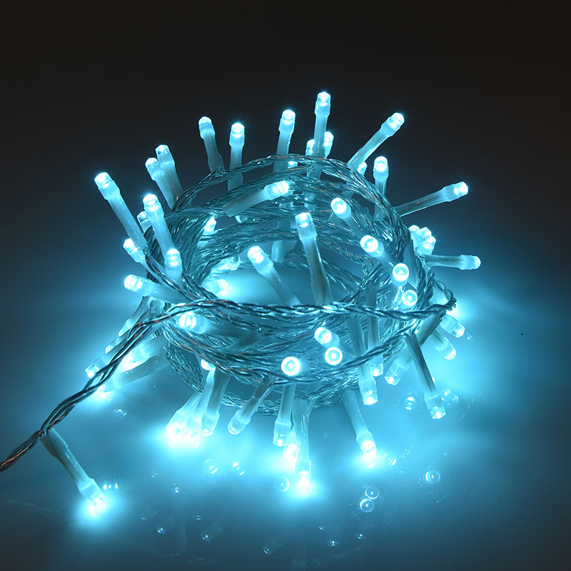 Infografica Catena 100 LED Acquamarina 5 Metri di Cavo Trasparente IP44 per Interni ed Esterni