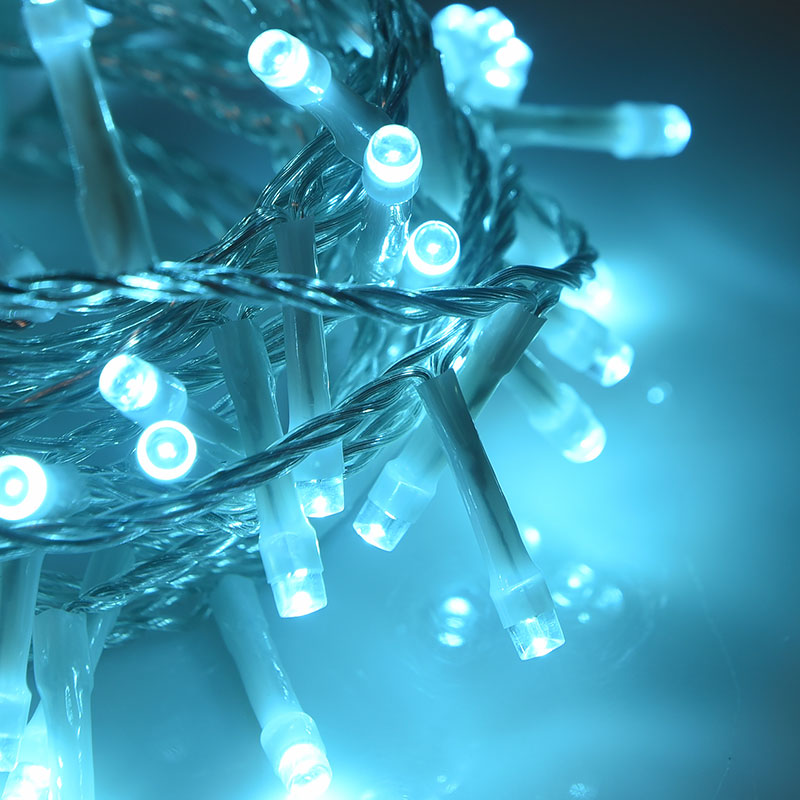 Infografica Catena 100 LED Acquamarina 5 Metri di Cavo Trasparente IP44 per Interni ed Esterni