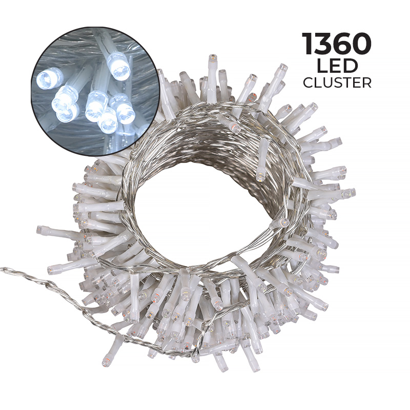 La nostra Catena Luminosa LED Cluster è una vera e propria opera d'arte dell'illuminazione, progettata per trasformare ogni spazio in un ambiente incantevole e sofisticato. Con ben 1360 luci LED bianche distribuite lungo 34 metri di cavo flessibile trasparente, questa catena luminosa offre una luminosità pura e intensa, ideale per creare atmosfere magiche e accoglienti in qualsiasi occasione. Realizzata con materiali di alta qualità, come gomma e rame, e dotata di un grado di protezione IP 44, questa catena LED è progettata per durare nel tempo, resistendo agli agenti atmosferici e garantendo una performance luminosa di prima classe. La distanza di 2,5 cm tra i LED assicura una distribuzione uniforme della luce, creando un effetto visivo straordinario che può impreziosire sia spazi interni che esterni. Il cuore tecnologico di questa catena luminosa si rivela nelle sue funzionalità avanzate: con 8 giochi di luce preimpostati, potrete scegliere l'atmosfera luminosa che più si addice al vostro umore o all'evento che desiderate celebrare. Inoltre, grazie al timer con funzione on-off e autospegnimento, potrete programmare l'illuminazione secondo le vostre esigenze, senza preoccuparvi di spegnere manualmente le luci. L'alimentazione è garantita da un trasformatore 31V con presa Schuko, assicurando sicurezza e affidabilità. La tensione di alimentazione di 220-240V AC, abbinata a una frequenza di 50 Hz, conferisce a questa catena LED un'efficienza energetica ottimale, permettendovi di godere di una luminosità senza pari senza preoccupazioni per il consumo energetico. Che si tratti di decorare il vostro giardino per una festa estiva, di aggiungere un tocco di magia al vostro salotto durante le festività natalizie, o semplicemente di creare un'atmosfera rilassante in una camera da letto, la nostra catena luminosa LED è la scelta perfetta per chi cerca una soluzione illuminotecnica versatile, elegante e di alta qualità. In conclusione, la Catena Luminosa LED Cluster da 1360 Luci Bianche rappresenta l'ideale unione tra estetica e funzionalità, offrendo un'illuminazione di qualità superiore per creare ambienti unici e memorabili. Scegliete la qualità e l'eleganza per le vostre decorazioni luminose e lasciatevi incantare dalla bellezza di 34 metri di pura luce bianca