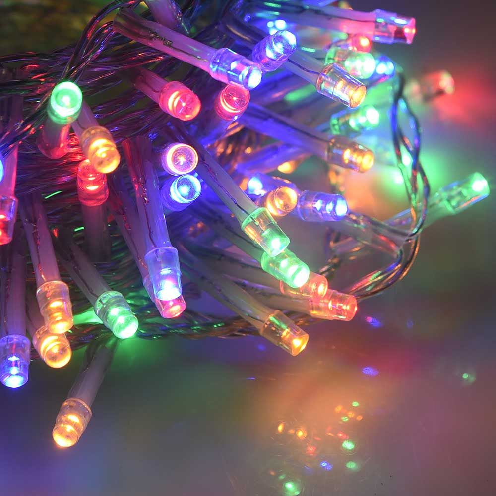 CATENA LUMINOSA MULTICOLORE 500 LUCI LED SU 25 METRI DI CAVO TRASPARENTE GIOCHI DI LUCE VERSATILI PER ESTERNI CREA AMBIENTAZIONI INCANTEVOLI