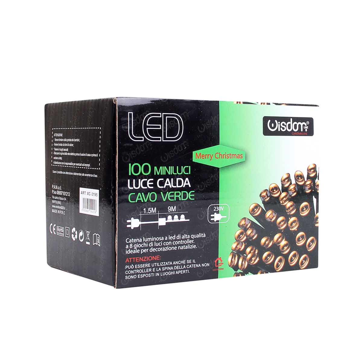 La catena luminosa WISDOM 100 LED da 9 metri è la soluzione ideale per chi desidera aggiungere un tocco di calore e raffinatezza agli interni. Con la sua luce calda e accogliente, questa catena luminosa è perfetta per creare atmosfere magiche in ogni stanza della casa. La tecnologia LED, più efficiente dal punto di vista energetico rispetto alle luci tradizionali a incandescenza, offre anche una vasta gamma di colori e modelli di illuminazione, rendendo ogni ambiente unico e speciale. Il cavo di colore verde si integra armoniosamente con l'ambiente, rendendo la catena una scelta discreta ma elegante per l'illuminazione di interni. Il suo design flessibile consente di adattarsi facilmente a qualsiasi spazio, che si tratti di una camera da letto, un soggiorno, o anche una vetrina. La lunghezza totale di 9 metri fornisce una copertura ampia, ideale per adornare alberi di Natale, cornici di porte, finestre o per creare accoglienti angoli luminosi. Dotata di un controller, questa catena luminosa offre 8 diverse modalità di luce, permettendo di scegliere tra effetti come lampeggiante, scintillante, luce fissa, onde, dissolvenza, sfumature e altro ancora. Questa varietà rende semplice creare l'atmosfera desiderata per ogni momento: da un'illuminazione delicata e rilassante per una serata tranquilla a casa, a una luminosità più vivace per feste e celebrazioni. Importante notare, la catena luminosa WISDOM, con il suo grado di protezione IP 20, è progettata esclusivamente per uso interno. Questo assicura che sia sicura e adatta per ambienti domestici, proteggendo dai rischi legati all'umidità e all'esposizione agli elementi esterni. Alimentata a 220V con una spina europea a 2 poli, è facile da installare e utilizzare, rendendola un'aggiunta pratica e funzionale per ogni casa. La qualità costruttiva è un altro punto di forza di questa catena luminosa. Realizzata con materiali come gomma e rame, garantisce durata e resistenza, assicurando che la bellezza e la funzionalità della catena rimangano invariate nel tempo. L'installazione è semplice e sicura, grazie ai materiali di alta qualità utilizzati. In conclusione, questa decorazione luminosa da 9 metri è una soluzione di illuminazione interna che combina eleganza, efficienza energetica e versatilità. Perfetta per chi desidera arricchire gli spazi interni con una luce calda e accogliente, questa catena luminosa è ideale per creare un'atmosfera unica e indimenticabile in ogni occasione