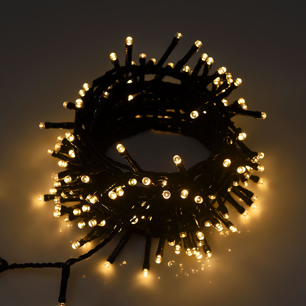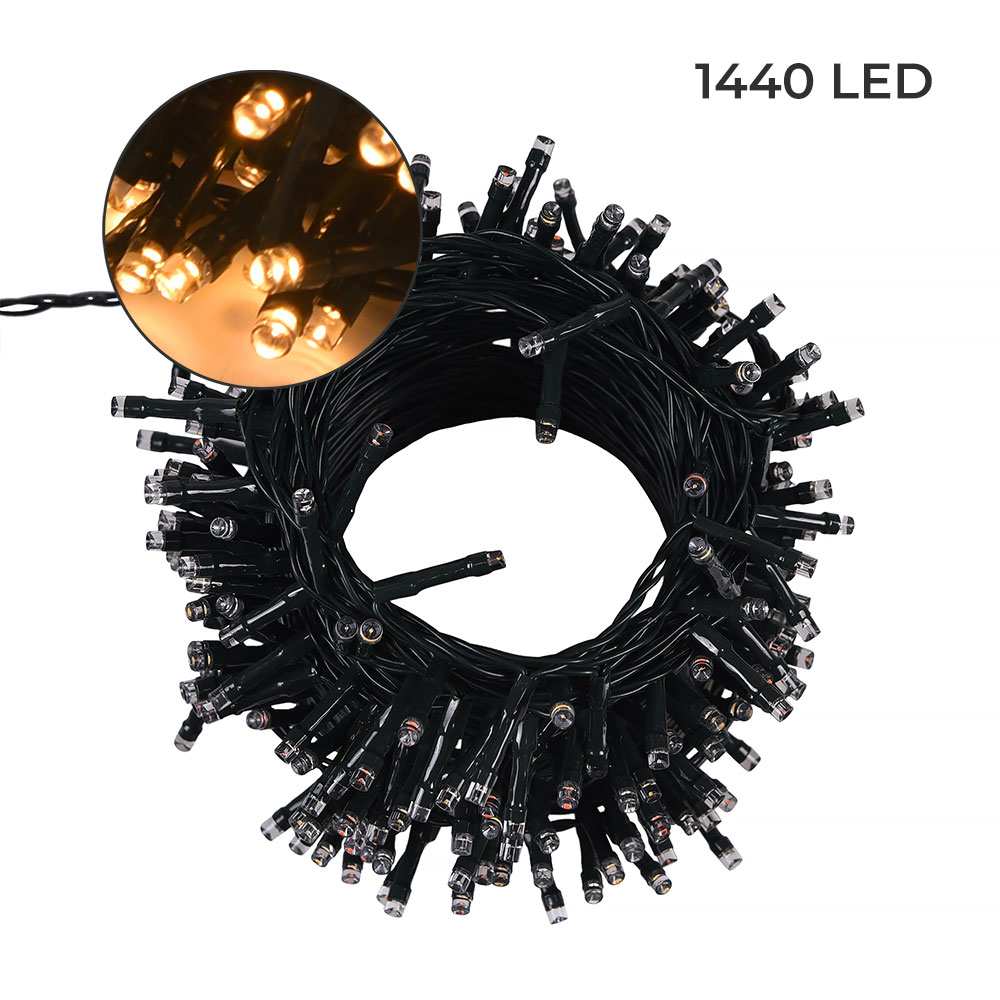La catena luminosa Wisdom 1440 LED rappresenta una soluzione di illuminazione avanzata che coniuga efficienza energetica con estetica raffinata. Con i suoi 72 metri di lunghezza e 1440 LED di tipo Reflex F5, questa catena emana una luce calda e invitante, perfetta per creare atmosfere suggestive sia in ambienti interni che esterni. Questo prodotto è l'ideale per chi cerca un'illuminazione che sia allo stesso tempo funzionale, decorativa e rispettosa dell'ambiente. Questa catena LED si adatta magnificamente a molteplici contesti. Nell'ambito domestico, è perfetta per decorare alberi di Natale, creare un'atmosfera accogliente in camere da letto, illuminare soggiorni o qualsiasi altro spazio. All'aperto, diventa un elemento di decoro ideale per giardini, terrazzi, gazebo e altri spazi, offrendo una soluzione luminosa elegante per eventi e celebrazioni. La tecnologia LED impiegata in questa catena garantisce un'illuminazione di alta qualità, superiore alle tradizionali luci a incandescenza. I LED, oltre a consumare meno energia, vantano una durata notevolmente superiore, riducendo la necessità di sostituzioni frequenti e contribuendo a un significativo risparmio energetico. Ciò fa della nostra catena una scelta sostenibile ed economica. Con 8 modalità di luce preimpostate, questa catena offre un ampio ventaglio di effetti luminosi per adattarsi a diverse atmosfere e occasioni. Dai giochi di luce fissa a quelli lampeggianti, passando per onde, dissolvenza e sfumature, il controller incluso permette di selezionare facilmente l'effetto desiderato. Realizzata con materiali di alta qualità, quali gomma e rame, la catena è progettata per resistere a vari fattori ambientali, inclusi il maltempo e l'umidità. Con il suo grado di protezione IP 44, è particolarmente adatta per l'uso esterno. L'alimentazione a bassa tensione (31V) assicura un utilizzo sicuro, sia in ambienti interni che esterni. Il design flessibile e il cavo verde si integrano perfettamente con l'ambiente circostante. Il colore del cavo, in particolare, si adatta alle piante e al paesaggio naturale, garantendo un'installazione armoniosa. La distanza di 5 cm tra i LED assicura una distribuzione uniforme della luce lungo la catena. L'installazione è semplificata grazie al cavo di alimentazione di 3 metri e al trasformatore 31V con presa Schuko, che permette un facile collegamento alla rete elettrica domestica (220-240V AC, 50 Hz). Questa catena luminosa è stata progettata per garantire una lunga durata, minimizzando la necessità di manutenzione. La qualità dei LED Reflex F5 assicura un'emissione luminosa costante e duratura. La manutenzione si limita a una pulizia periodica per preservare sia l'efficienza luminosa sia l'estetica. In definitiva, questa catena di luci è una soluzione di illuminazione versatile, efficiente e di alta qualità, che combina funzionalità, bellezza estetica e sostenibilità ambientale. Che sia per creare un'atmosfera festiva, aggiungere eleganza a un evento, o semplicemente per illuminare uno spazio in modo efficiente, questa catena LED è una scelta eccellente