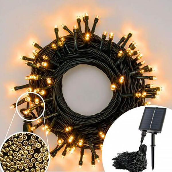 CATENA LUMINOSA SOLARE 1000 LED LUCE GIALLA ILLUMINAZIONE FLESSIBILE E SOSTENIBILE PER DECORAZIONI ESTERNE DI GRANDE IMPATTO