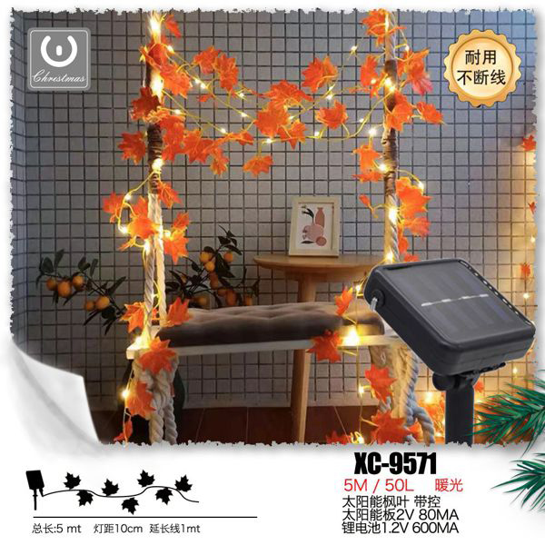 CATENA LUMINOSA SOLARE 50 LED FOGLIA LUCE CALDA