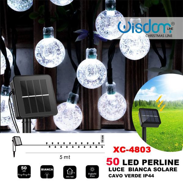 CATENA LUMINOSA SOLARE 50 LED PERLINE LUCE BIANCA