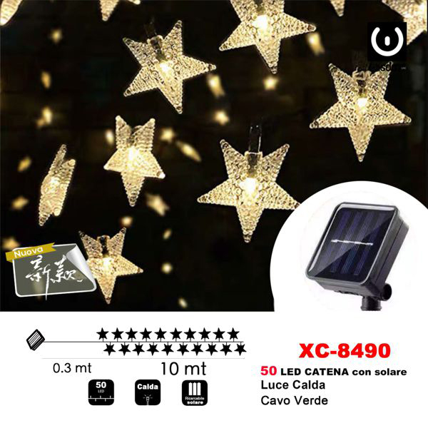 CATENA LUMINOSA SOLARE 50 LED STELLA LUCE CALDA