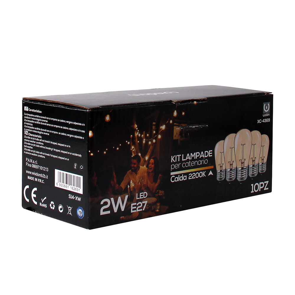 KIT DA 10 PEZZI DI LAMPADINE LED 2W E27 LUCE CALDA 2200K EFFICIENZA ENERGETICA E DESIGN MODERNO PER INTERNI