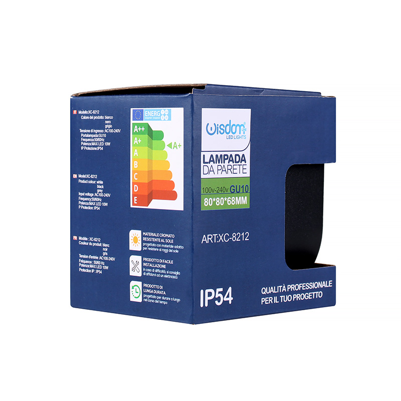 La lampada LED GU10 cubica nera rappresenta l'apice del design nell'illuminazione moderna, perfetta per chi ricerca stile e funzionalità. Con una forma geometrica pulita e una finitura nera opaca, questa lampada si adatta a svariati contesti abitativi, da quelli minimalisti a quelli più ricercati, offrendo una sorgente luminosa efficiente e di lunga durata. La classe energetica A+ garantisce un consumo energetico ridotto, contribuendo al risparmio in bolletta e alla riduzione dell'impatto ambientale. La versatilità è assicurata dal supporto per lampadine GU10, che permette di scegliere tra un'ampia varietà di lampadine LED in base alle proprie esigenze di illuminazione, sebbene la lampada venga fornita senza lampadine incluse. Con una tensione di alimentazione che varia da 110 a 265V AC e una frequenza di 50/60 Hz, questo dispositivo di illuminazione è adatto sia per l'uso residenziale che commerciale. La realizzazione in alluminio di alta qualità non solo le conferisce un aspetto sofisticato ma assicura anche durabilità e resistenza nel tempo. Il grado di protezione IP54 indica che la lampada è protetta da polveri e schizzi d'acqua, rendendola un'opzione ideale sia per interni che per esterni, in luoghi come giardini, terrazze, corridoi o sale d'attesa. Le sue dimensioni contenute, 80 x 80 x 68 mm, permettono un'inserimento discreto in ogni ambiente senza rinunciare a una presenza estetica distintiva. L'integrazione di questa lampada nel proprio schema di illuminazione non solo migliorerà l'aspetto generale dello spazio ma anche la qualità della luce, con un'attenzione particolare all'efficienza energetica e alla sostenibilità ambientale. Sia che si desideri creare un'atmosfera accogliente in un salotto o un'illuminazione funzionale in un ufficio, la lampada LED GU10 cubica nera è la scelta ideale per una soluzione di illuminazione di design