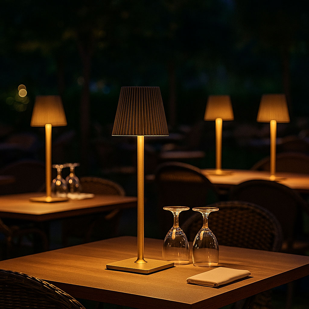 La lampada da tavolo a LED colore oro con ricarica solare e USB rappresenta la perfetta combinazione tra estetica, funzionalità e sostenibilità. Pensata per ambienti moderni come ristoranti, bar, terrazze, giardini o ambienti interni domestici, questa lampada offre un’elegante soluzione d’illuminazione senza compromessi. Grazie al suo design compatto con paralume tondo plissettato e finitura dorata, si adatta armoniosamente a qualsiasi stile di arredamento, dal contemporaneo al classico.