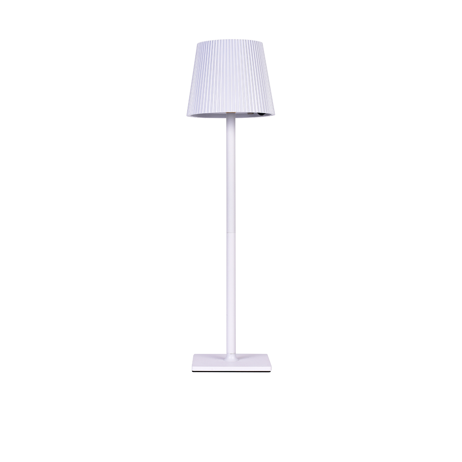 LAMAPADA LED DA TAVOLO BIANCA RICARICABILE CON PARALUME PLISSETTATO 3 TEMPERATURE COLORE REGOLABILI ALIMENTAZIONE SOLARE E USB