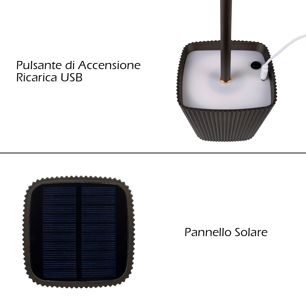 Una delle caratteristiche più apprezzate di questa lampada LED da tavolo è la doppia modalità di ricarica. Grazie alla presenza del pannello solare integrato, puoi utilizzare l’energia del sole per alimentare la lampada, rendendola una scelta ecologica e perfetta per l’utilizzo all’aperto, in terrazzi, giardini, balconi o campeggi. In alternativa, puoi collegarla facilmente tramite cavo USB (incluso nella confezione) a una presa o power bank per una ricarica rapida.