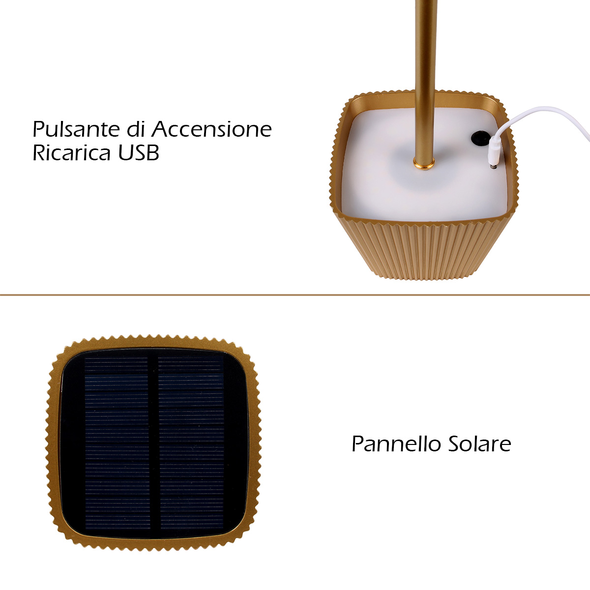 RICARICABILE: ENERGIA SOLARE + USB (CAVO INCLUSO)