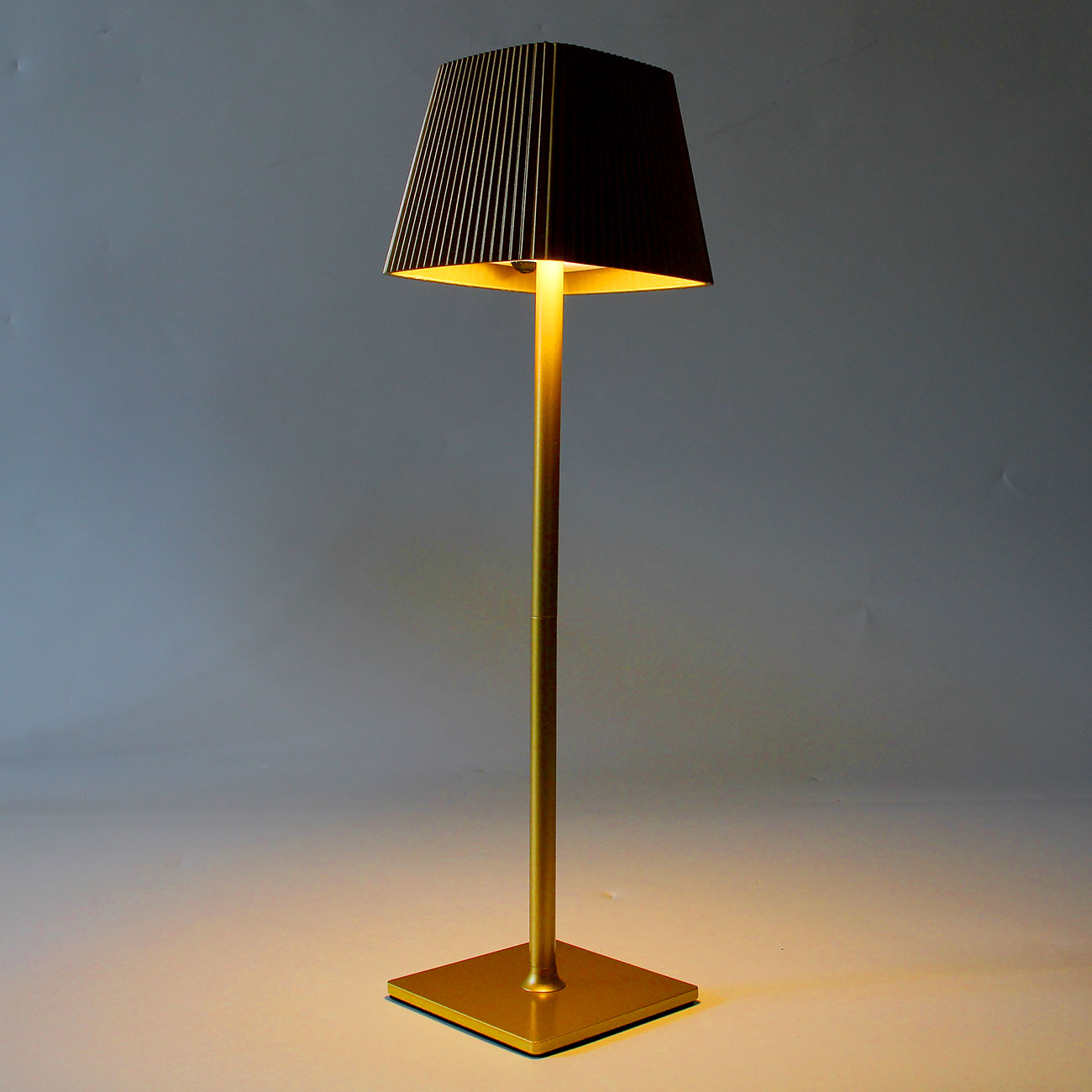 LAMPADA LED DA TAVOLO ORO RICARICABILE CON PARALUME QUADRATO PLISSETTATO RICARICA SOLARE + USB